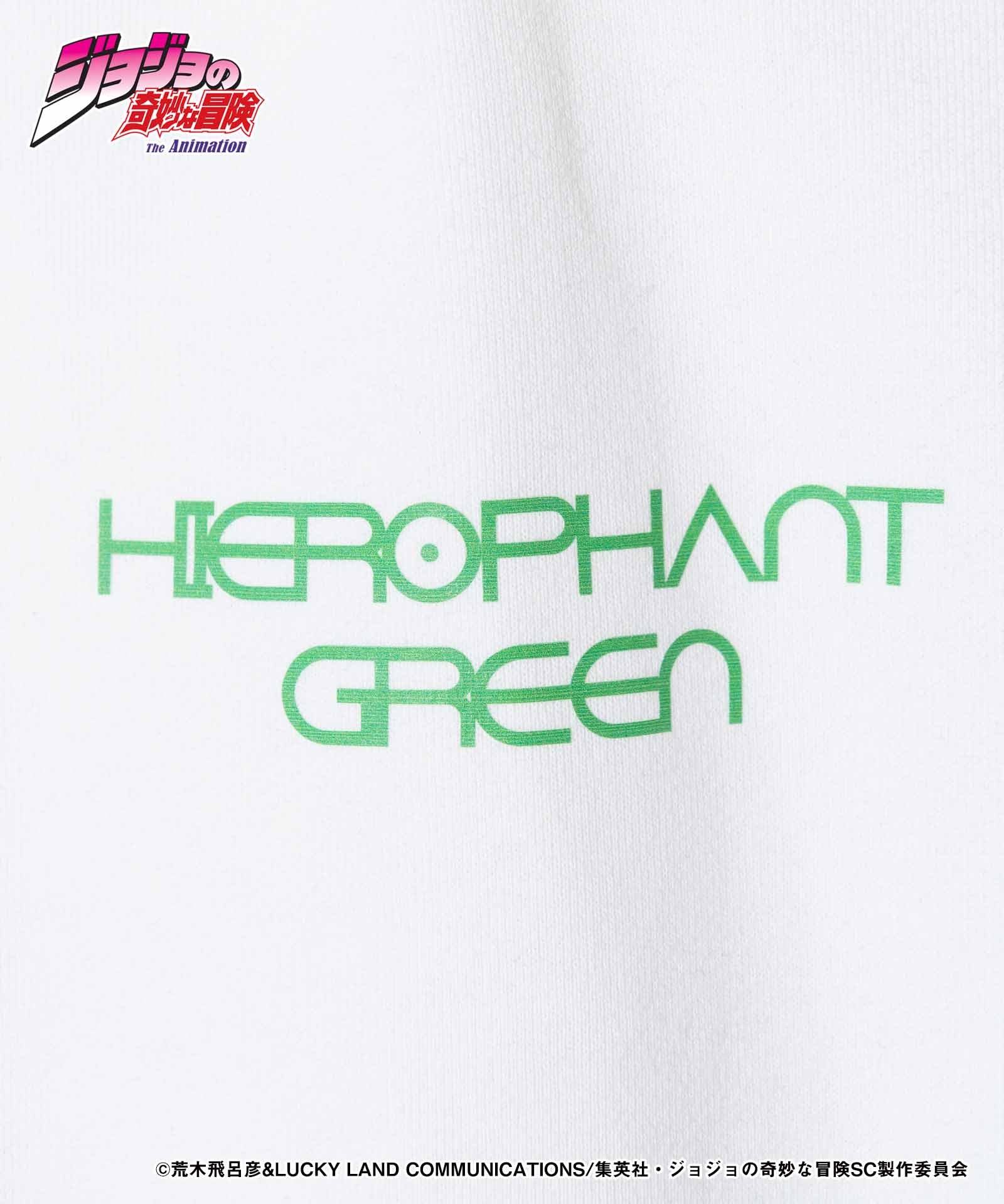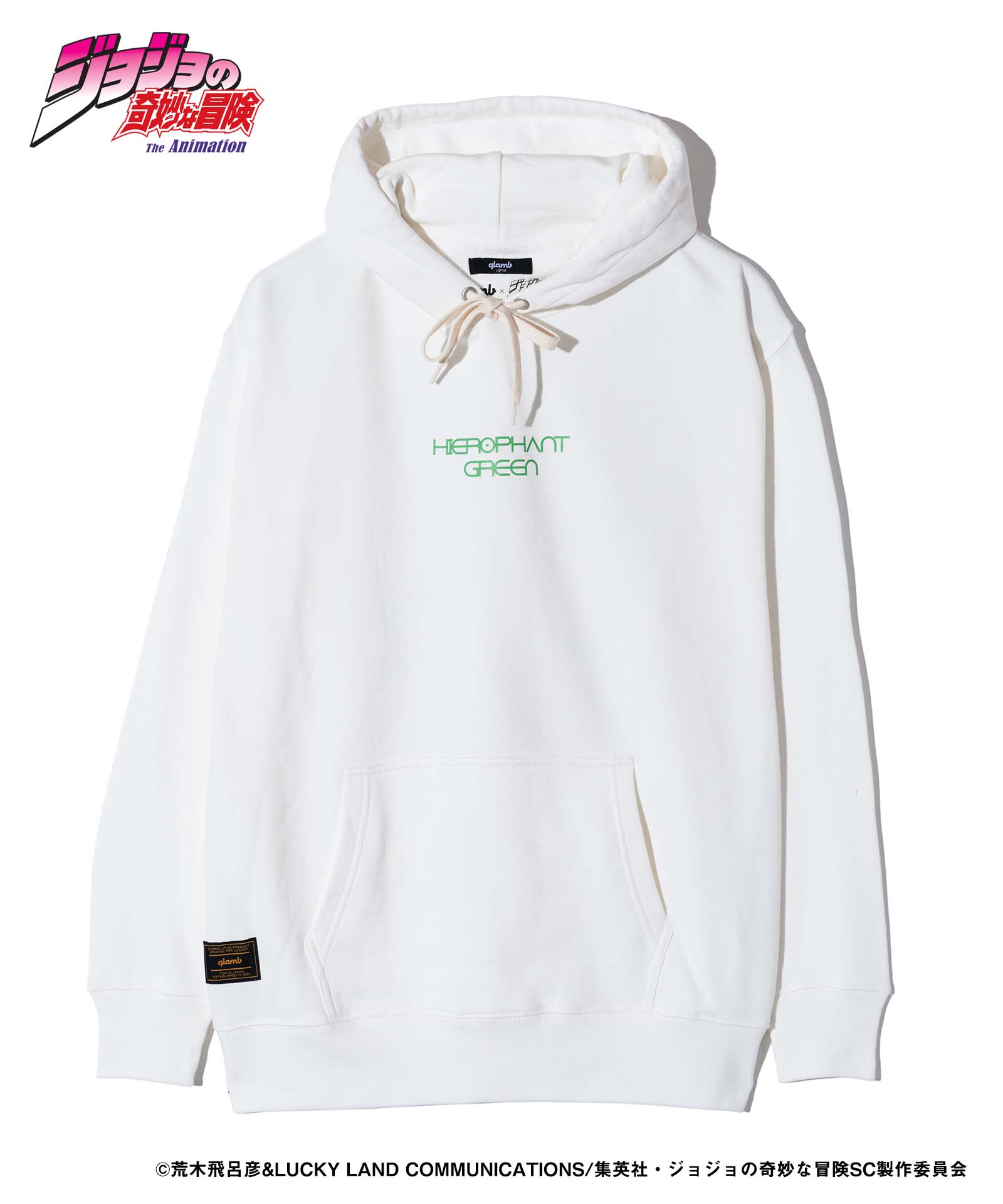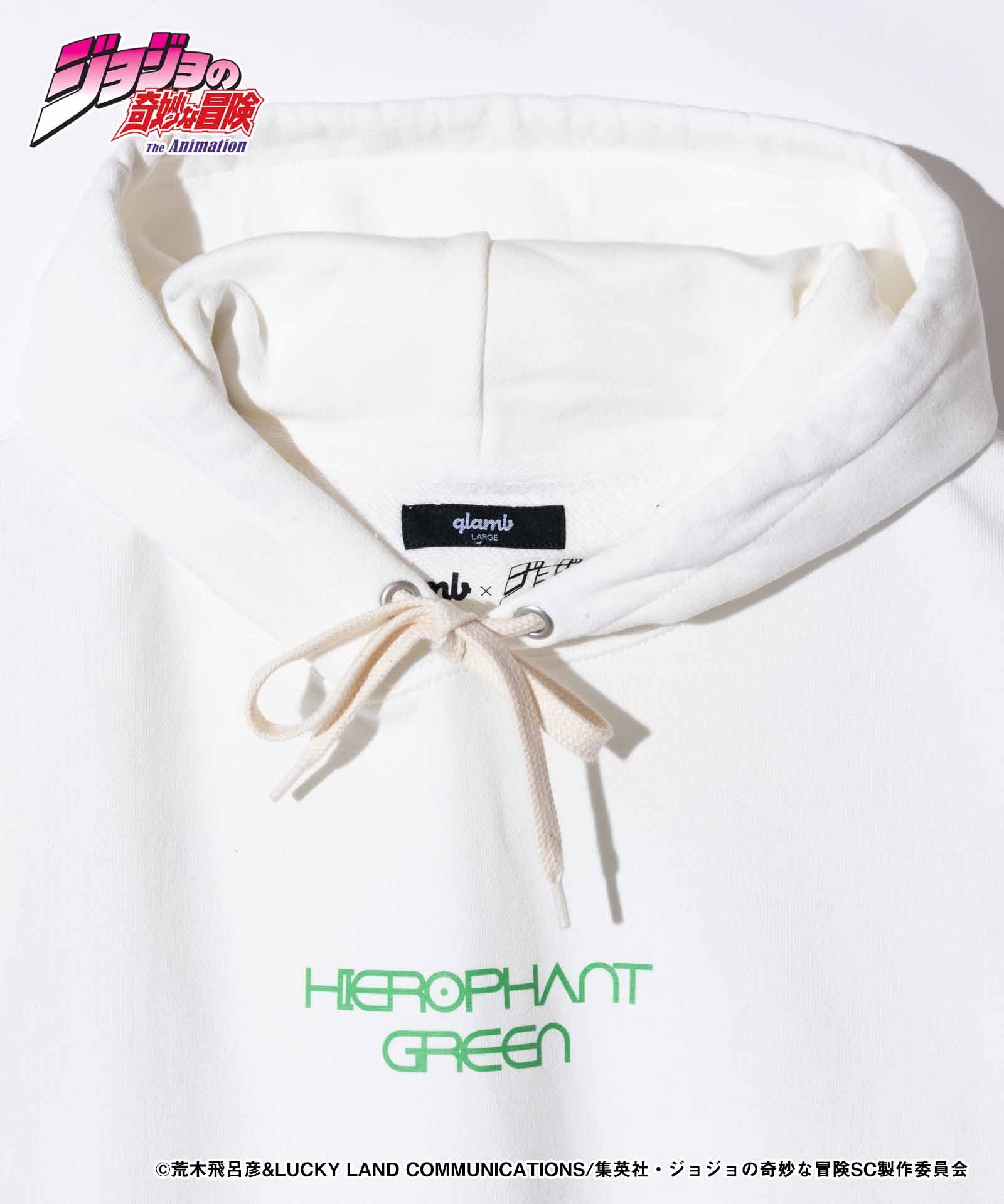 动漫“ Jojo的怪异冒险:星尘十字军”与Glamb合作。 Hierophant Green Hoodie将Kakyoin Noriaki摊位“ Hierophant Green”的形象投射到代表街头上衣的连帽衫上。