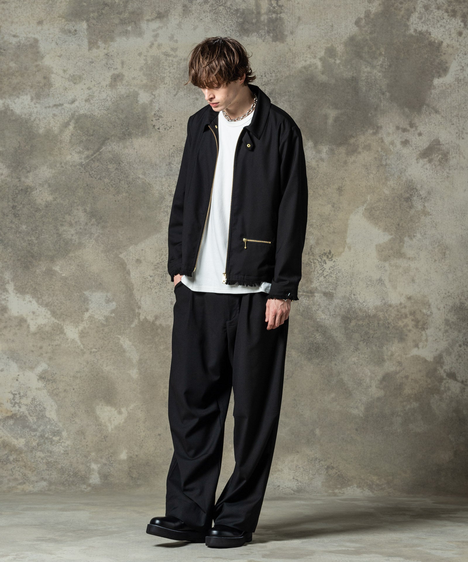 Stunn Drizzler设置提供了一种设置风格,其外套和底部(主要是毛毛雨夹克)的主题是Glamb本赛季收藏的“ Stunn”的主题。顶部的身体具有紧凑的常规轮廓,长度略短。下摆装饰有垃圾粉碎的饰面,从而产生了独特的外观,使随意和正式之间的边界模糊。其他详细信息包括一种不对称的口袋设计,该设计模仿了骑手的夹克,脖子上的标签以及背面的交叉缝线,乍一看使它看起来很简约,并且使用了许多设计。除了颜色变化外,我们还有象牙和海军,它们使用条纹织物,身体织物是纯正的,但黑色,带有黄金,每种都有三种独特的颜色。由同一织物制成的底部具有宽松的轮廓,该轮廓是三维式的膝盖上有两个tuck的。顶部和底部都是基于复古的美国风格,而固定的重新解释是从纺织品和细节中给出的。