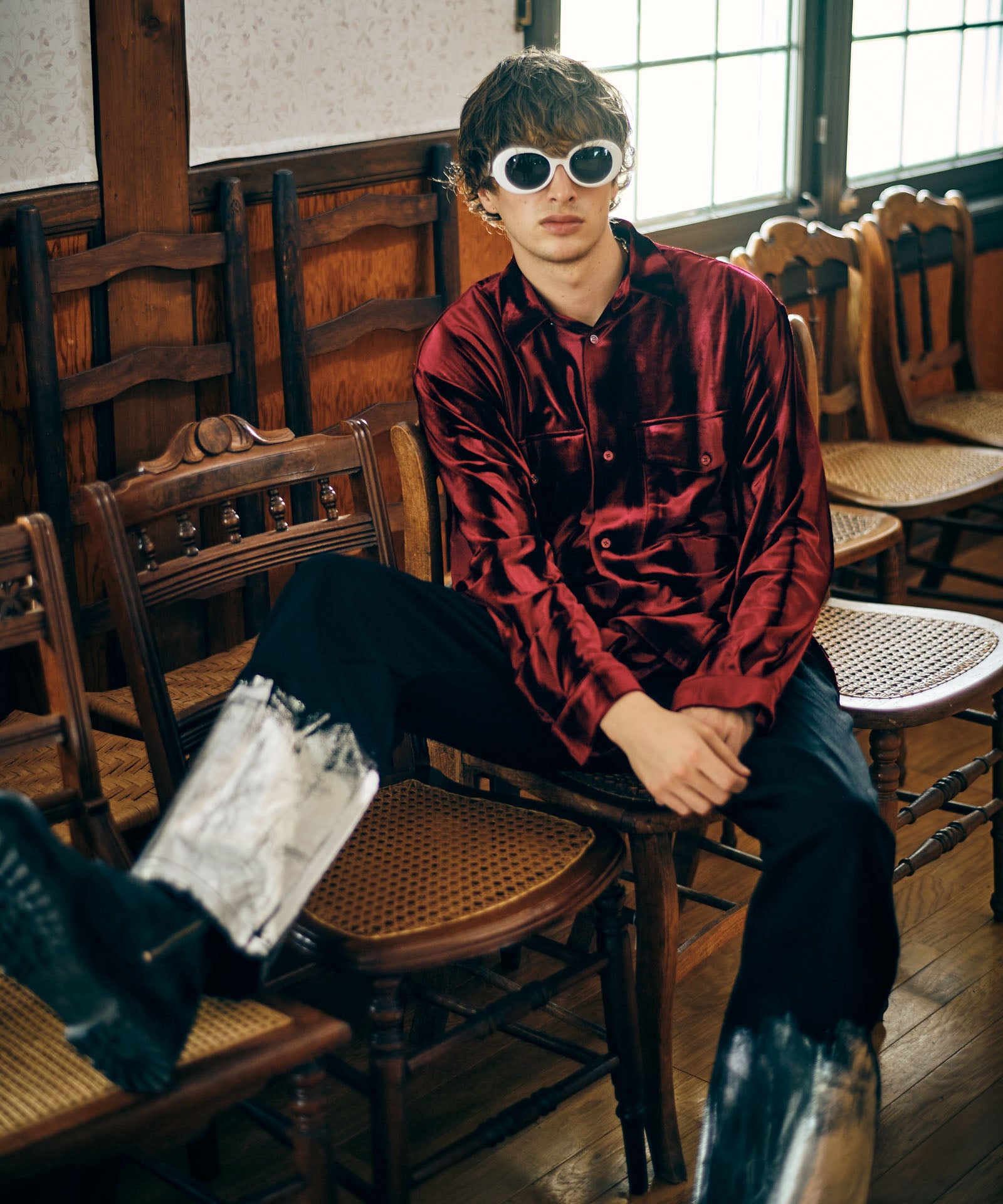迷人的阴影丝绒衬衫,带有迷人的纺织品工作形状成人衬衫样式。身体有一个超大的轮廓,并带有空间的宽度。纺织品中使用的丝绒织物会根据佩戴者的动作创造出光泽的阴影。与其设计的外观相反,纺织品是由拉伸混合材料制成的,使其易于佩戴。建议不仅以与衣服衬衫相匹配的方式来造型,还应将其用作睡衣衬衫。