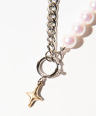 ブランドのバランス感覚が生み出した異素材ミックスにラグジュアリーとストリートが交差するAsymmetry Pearl Necklace。大ぶりのシェルパールを無骨なメタルチェーンとコンビネーション。小ぶりなスターチャームをあしらって抜け感ある一本となりました。