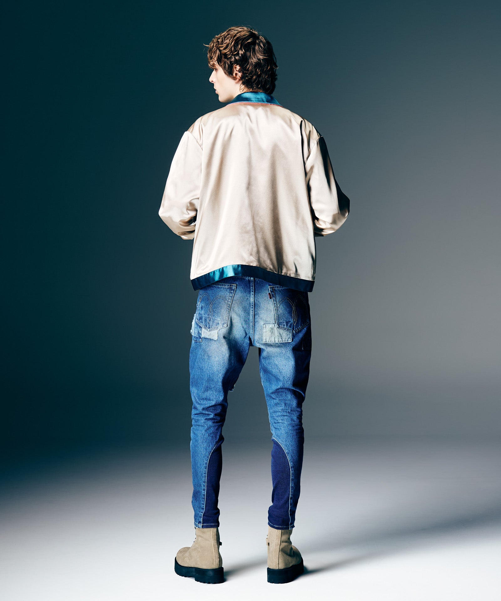 紧凑的轮廓和艳丽的素材使用让人联想起往年的outside look的Short Satin Jacket。 短地归结了的夹袄类型的身体织物使用绸缎质地。 乍一看很像一件连衣裙,但脖子上的条纹是普通色,有边缘。 相对于单一色调的Black, Beige采用配色,每个颜色变化都有不同的氛围,这也是本作的特征。 发挥有轻的穿着的感觉,不仅外套衬衫感觉也能做造型。