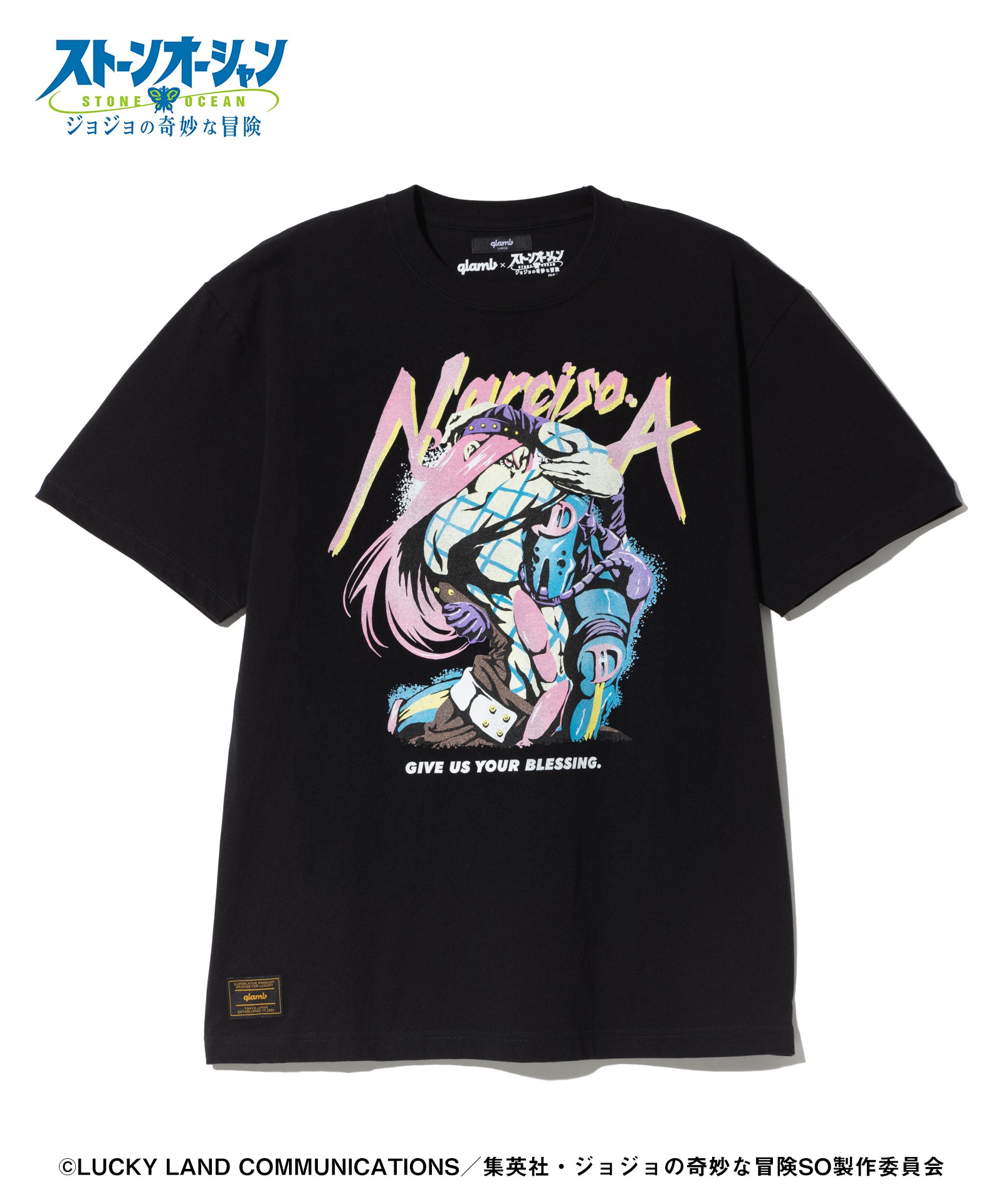 动画《jojo的奇妙冒险stone ocean》和glamb合作。 将纳西索·阿纳苏伊的肖像印在t恤上的Narciso·A -shirts。