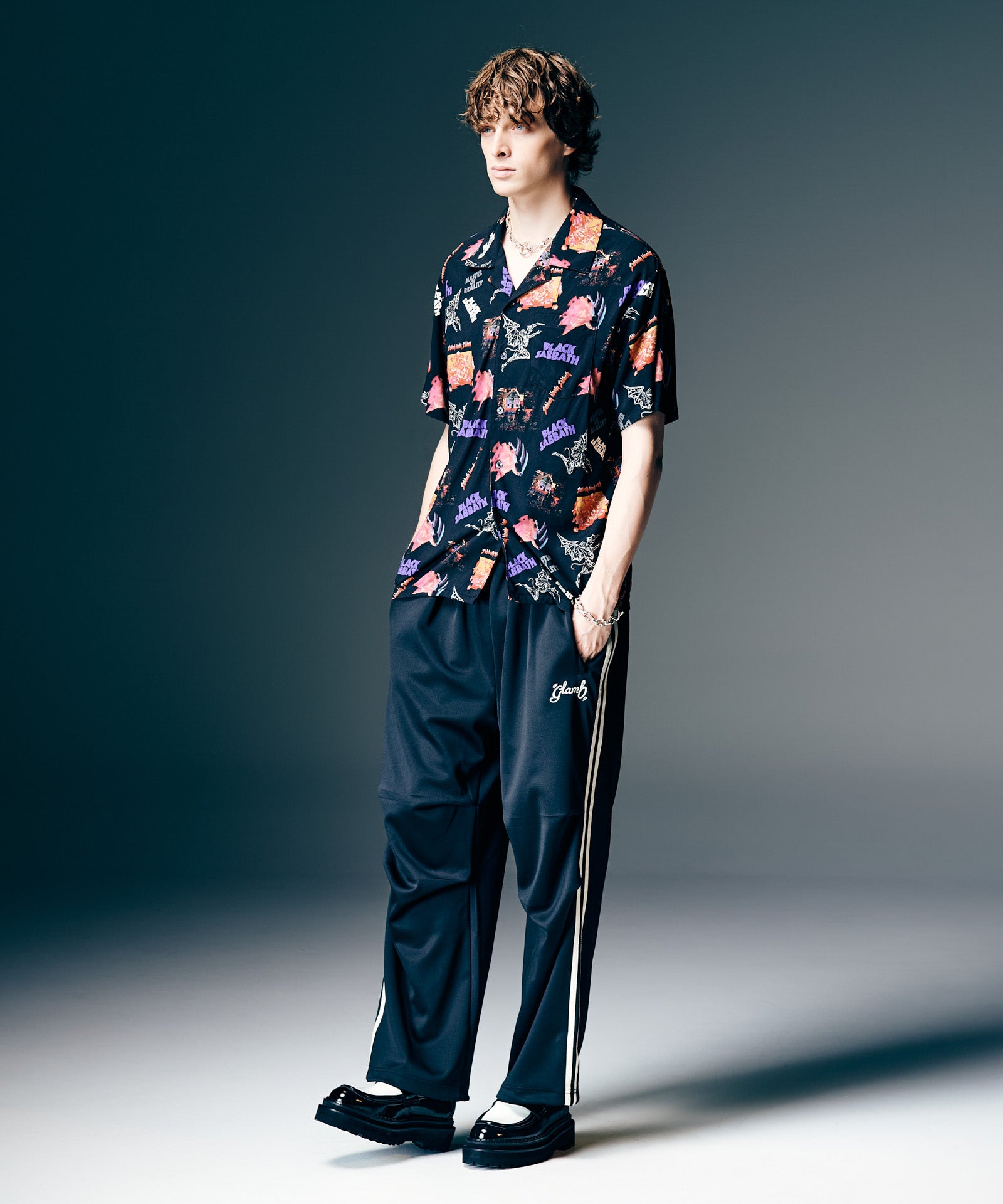 自在なシルエットアレンジのポテンシャルを備えたトラックジャージ、Tuck Baggy Jersey Pants。ボディは膝元に2タックとってボリュームを付けたワイドシルエット。裾にドローストリングを備えておりストレートからテーパードまでお好みのラインにアレンジいただけます。腰元には小物を吊り下げられるDカン、左右のポケットもジップ仕様にしてユーティリティを向上。ワンマイルからタウンユースまでシーンを問わずにご着用いただけます。今季のコレクションはセットアップとなるTurtleneck Oversize Jerseyも展開。トップスとボトムスの双方で新たなシルエットメイキングが施されており、トラックスタイルを真新しい輪郭で提案します。