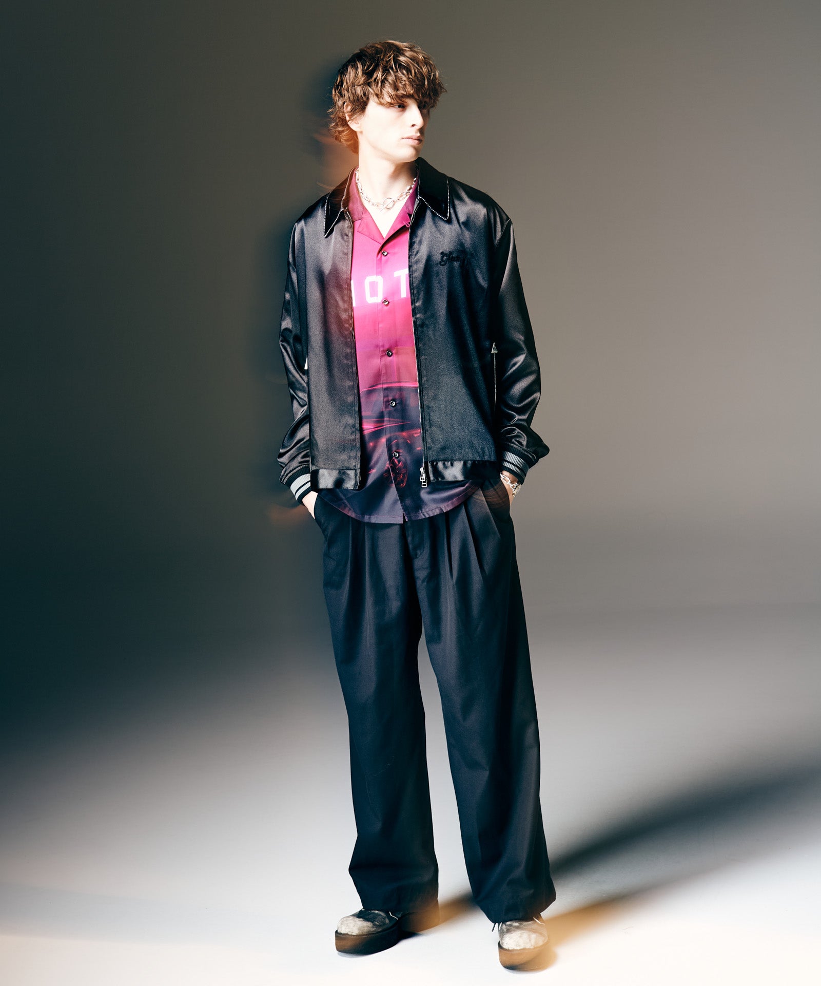 スラックスにブランドならではの自由なスポーツミックスを掛け合わせたAdjustable Balloon Slacks。テキスタイルにレーヨン混の落ち感あるスーツ生地を用いながら、ボディは左右6本ものタックでバルーン状に構築したバギーシルエットに。ウエストのドローコード仕様に加え、ゴム仕様の裾はスピンドルで幅調整が可能となっており、シチュエーションやコンディションに合わせて着心地をアレンジいただけます。