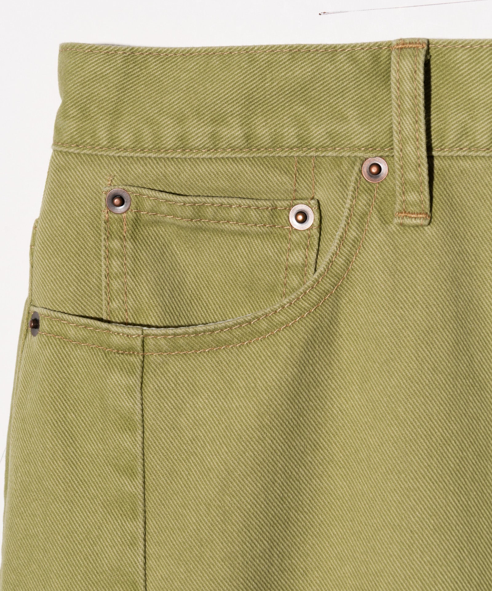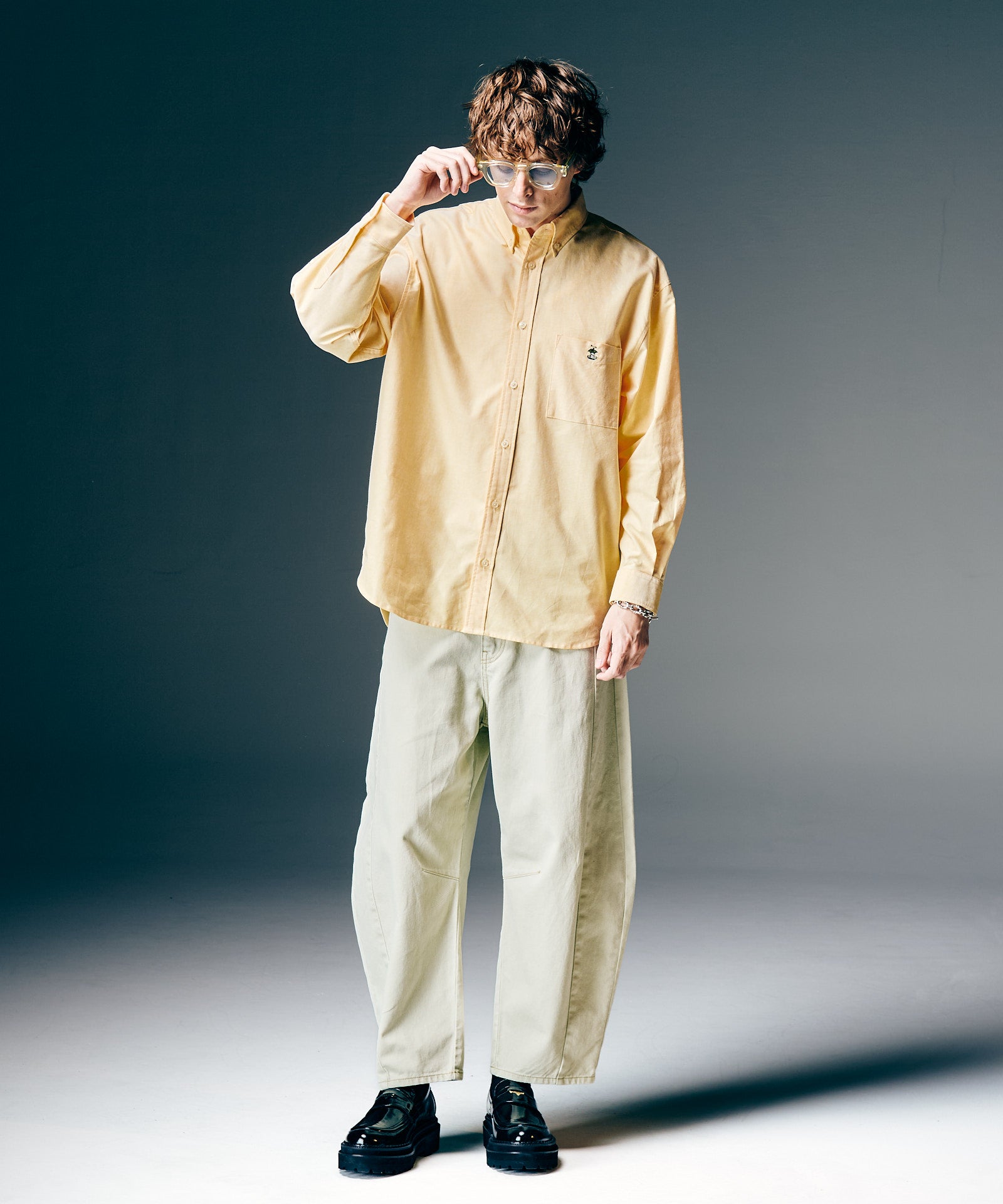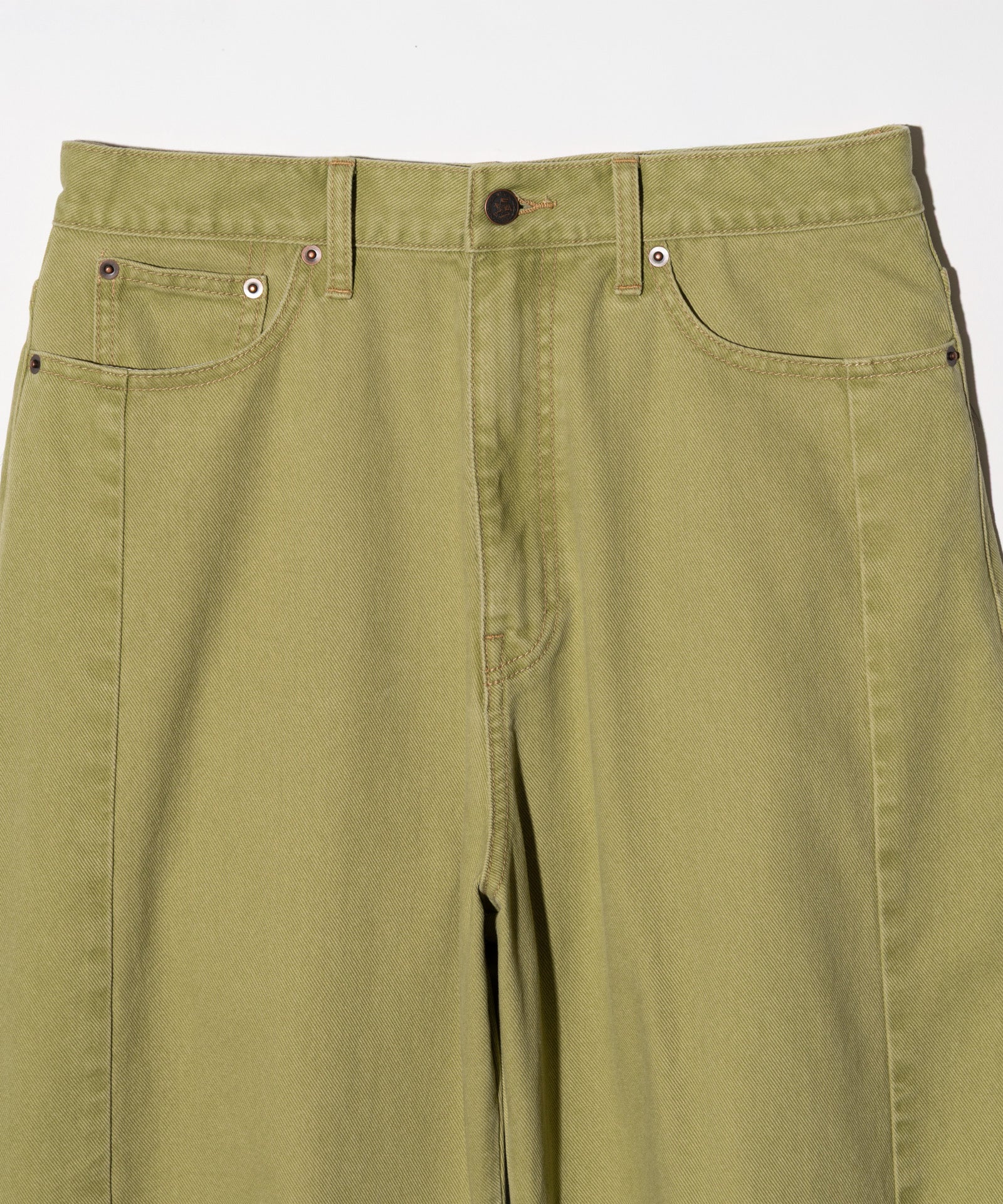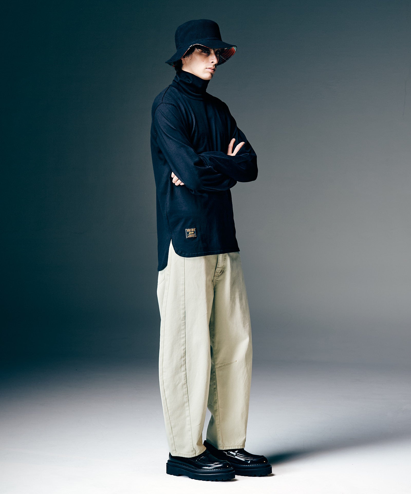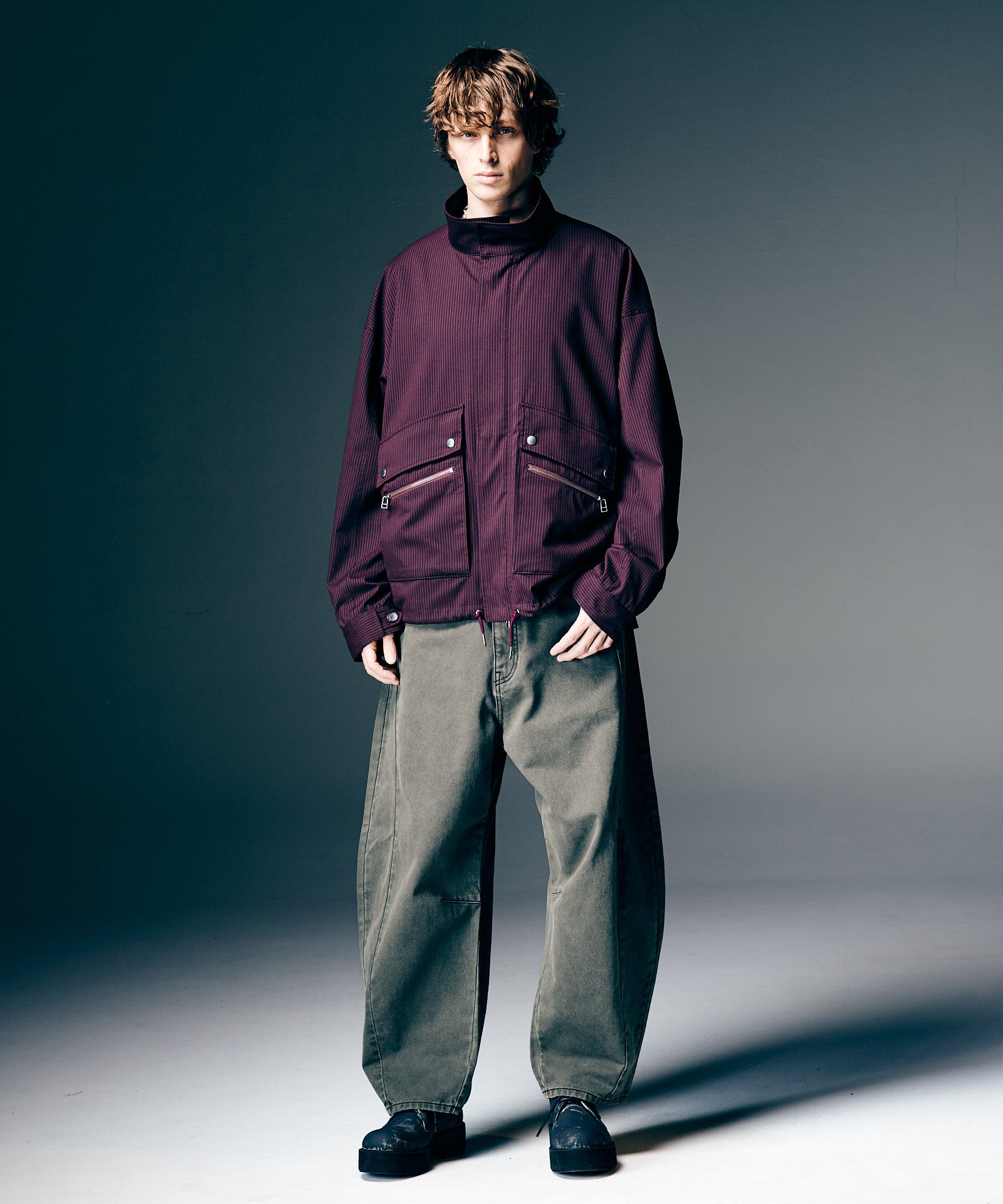 glambの独創的なワイドシルエットメイキングをカラーコーディネートで提案するColor Barrel Denim。バルーン状のシルエットは丸みを帯びた輪郭に合わせて前身頃を2パネル使いで構成。さらに裾内側にダーツを加えた立体的なパターンによって表現しています。4色展開となるカラーバリエーションはいずれもアッシュがかった色調で展開。アイコニックなルックスだからこそ、プレーンなトップスと合わせた抜け感あるスタイリングがおすすめです。