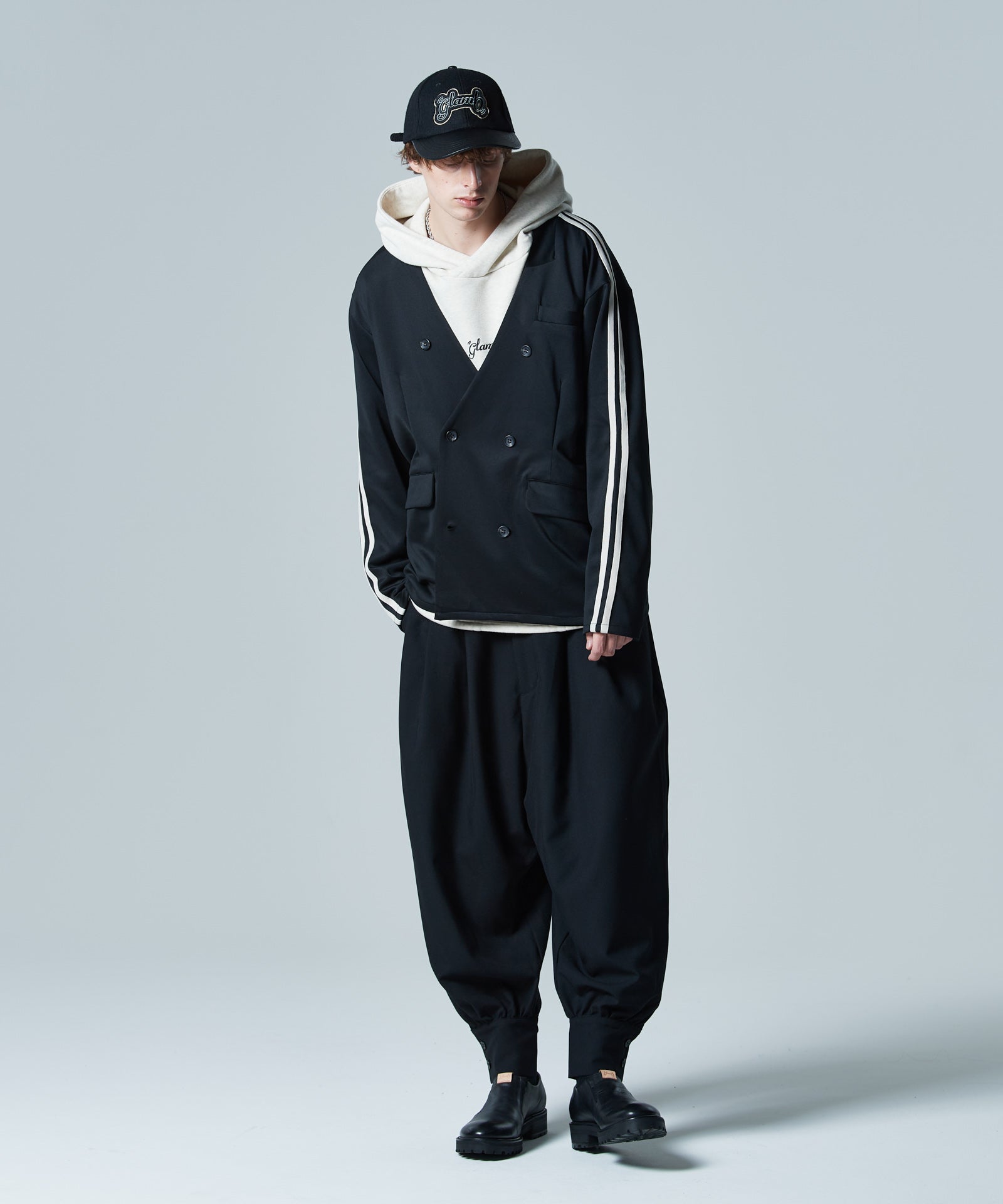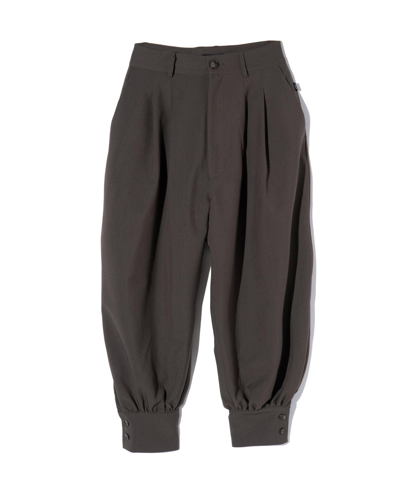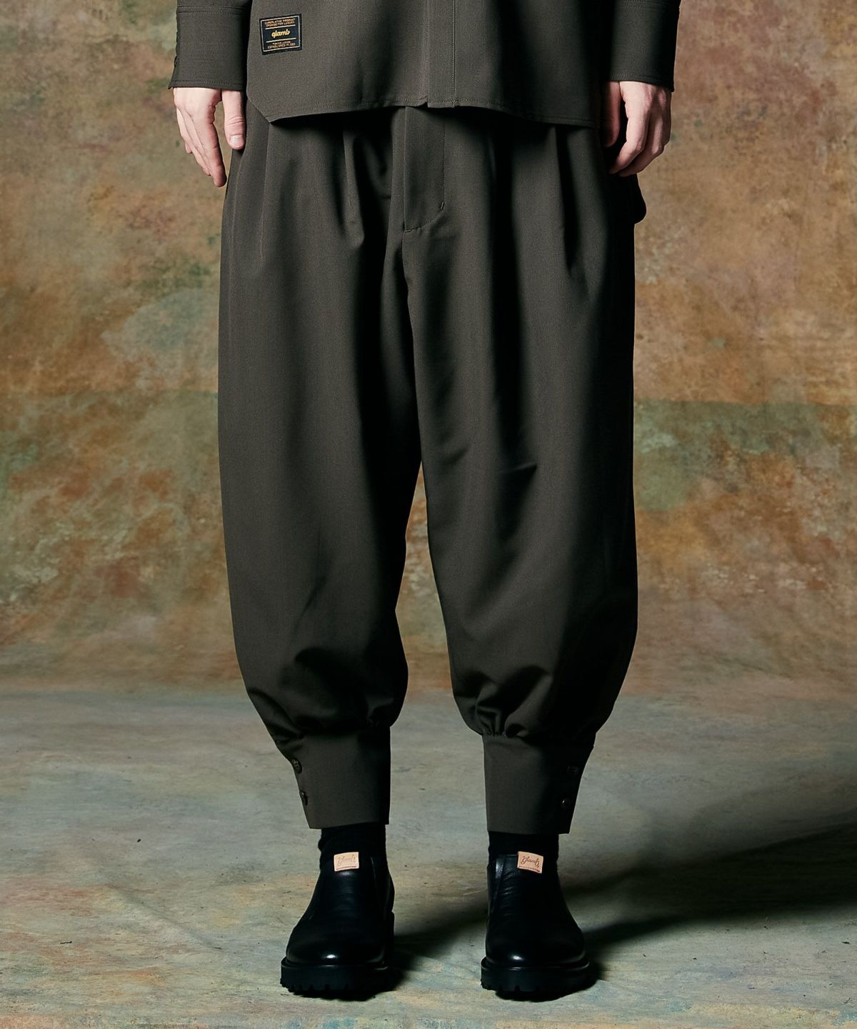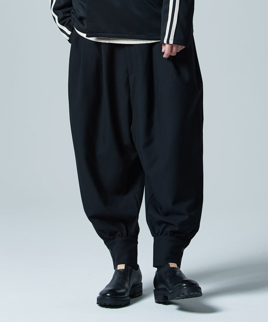 以衬衫为灵感设计的Mute Form Shirt Pants表现了前卫的下装风格。 轮廓是胯上深,腰上取2个褶边加上宽宽的卷度的萨尔埃尔轮廓。 仿照衬衫袖口的2颗纽扣的袖扣拉紧下摆,变化的脚线和glamb的玩心演出。 用于纺织品的是具有高雅光泽的人造丝混生面料。 也请一定要看看Deformed Shirt。