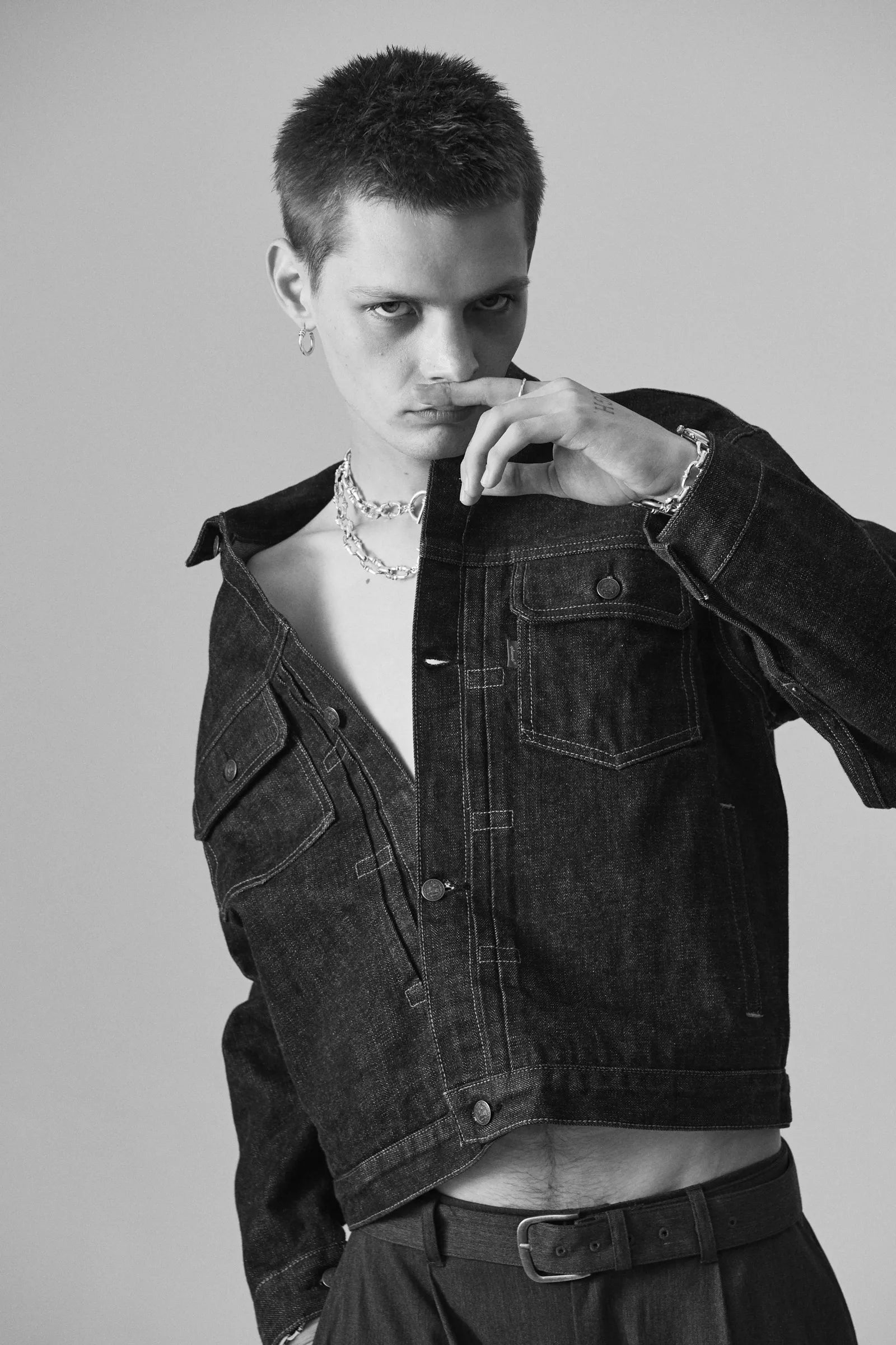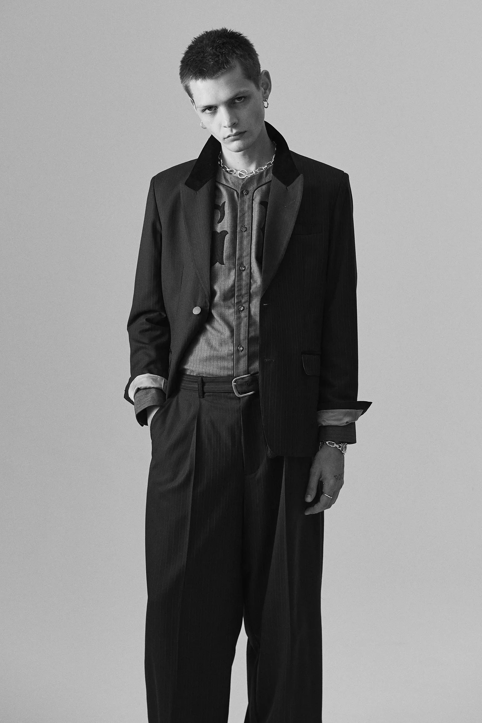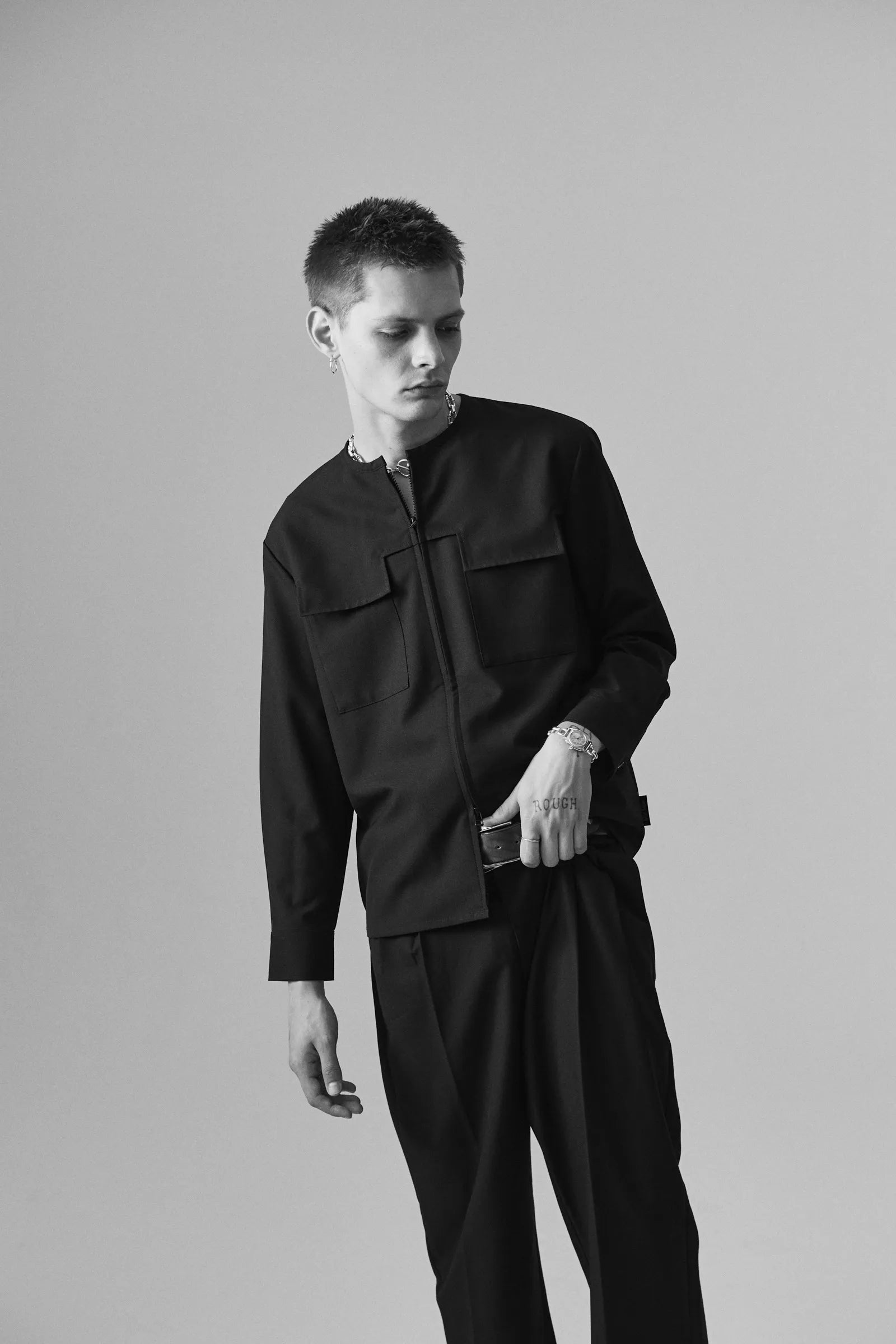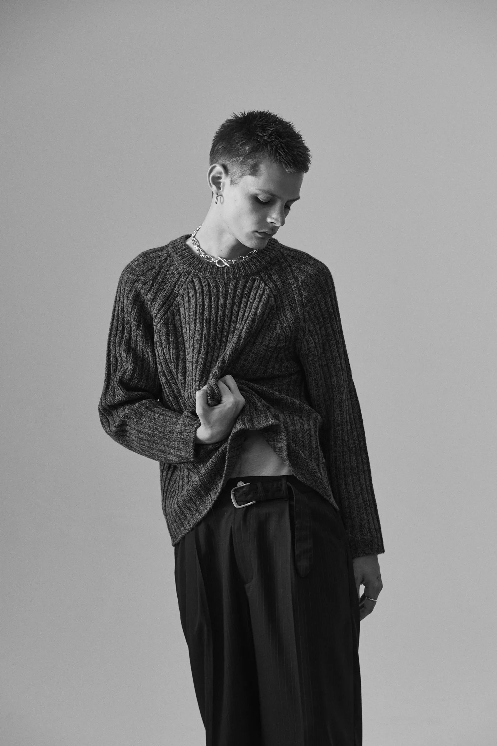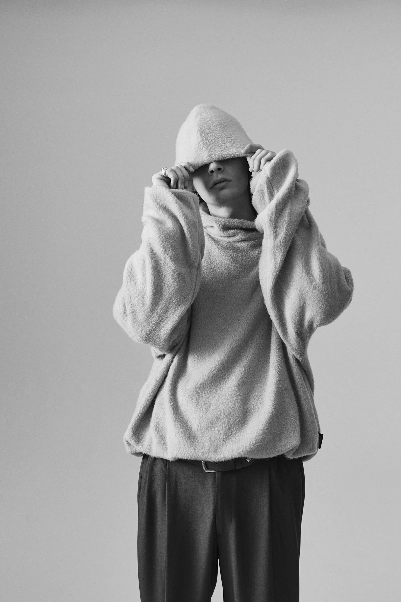 ブルーノイズが僕が“Rebirth”と同時に今季表現したかったglambとしての“シンプル”の在り方だった。意見がない人間はつまらない。色や柄によって武装する足し算ではなく、物や人としての存在価値を剝き出しにする引き算を僕は試みた。僕はまた眠れぬ夜に怯えながら、この15型をBlue Noiseと名付けてあなたの心に突き刺すことにした。
