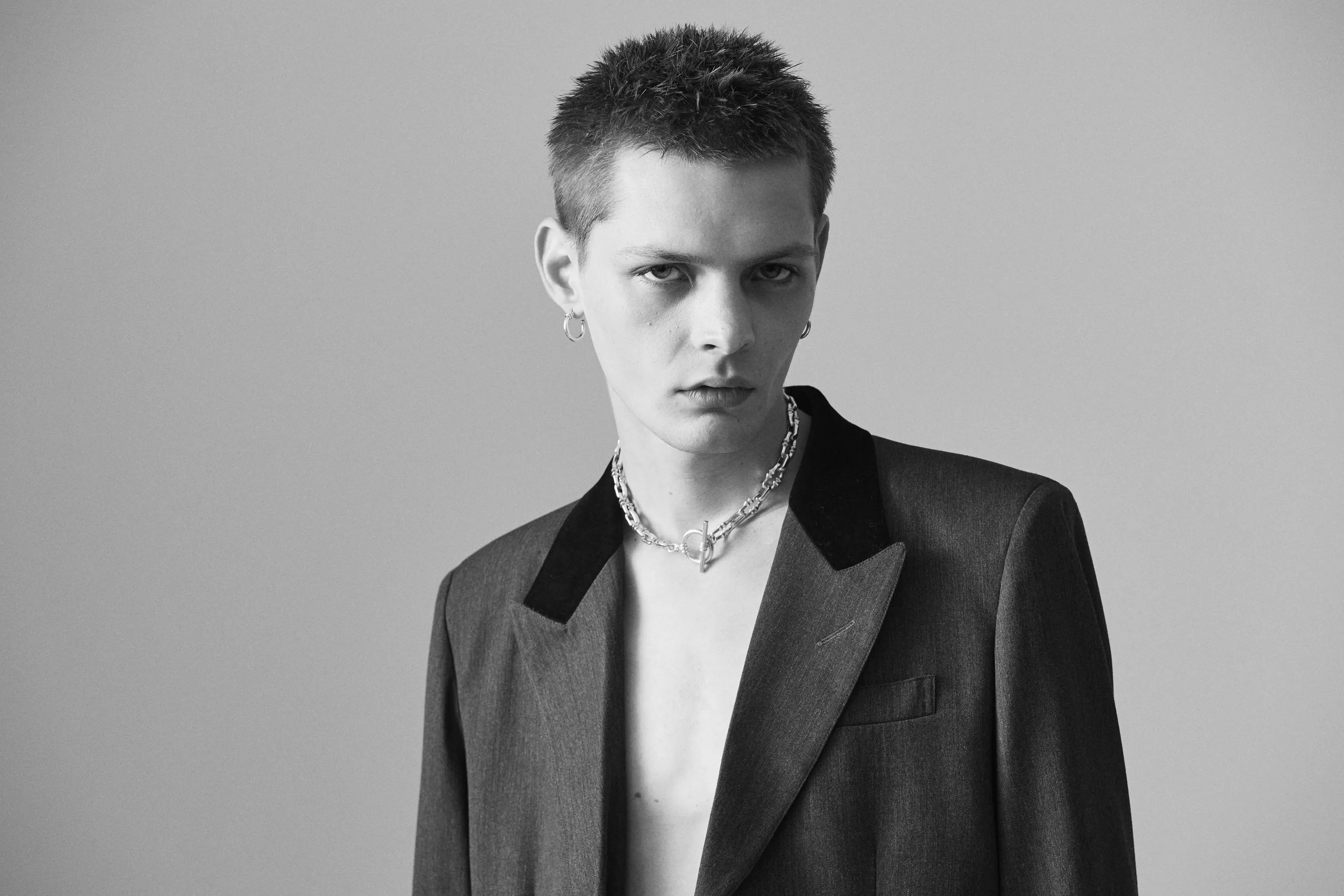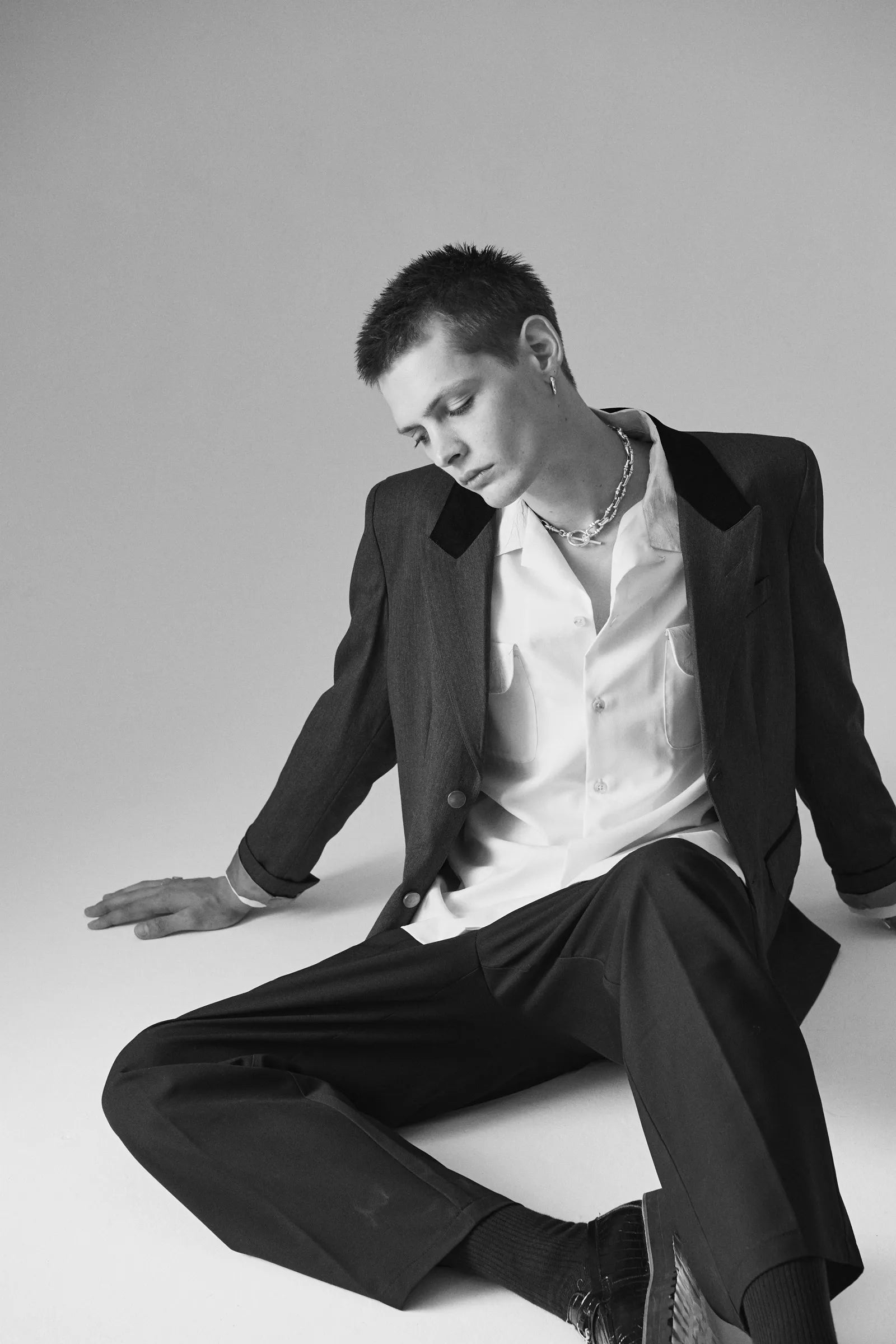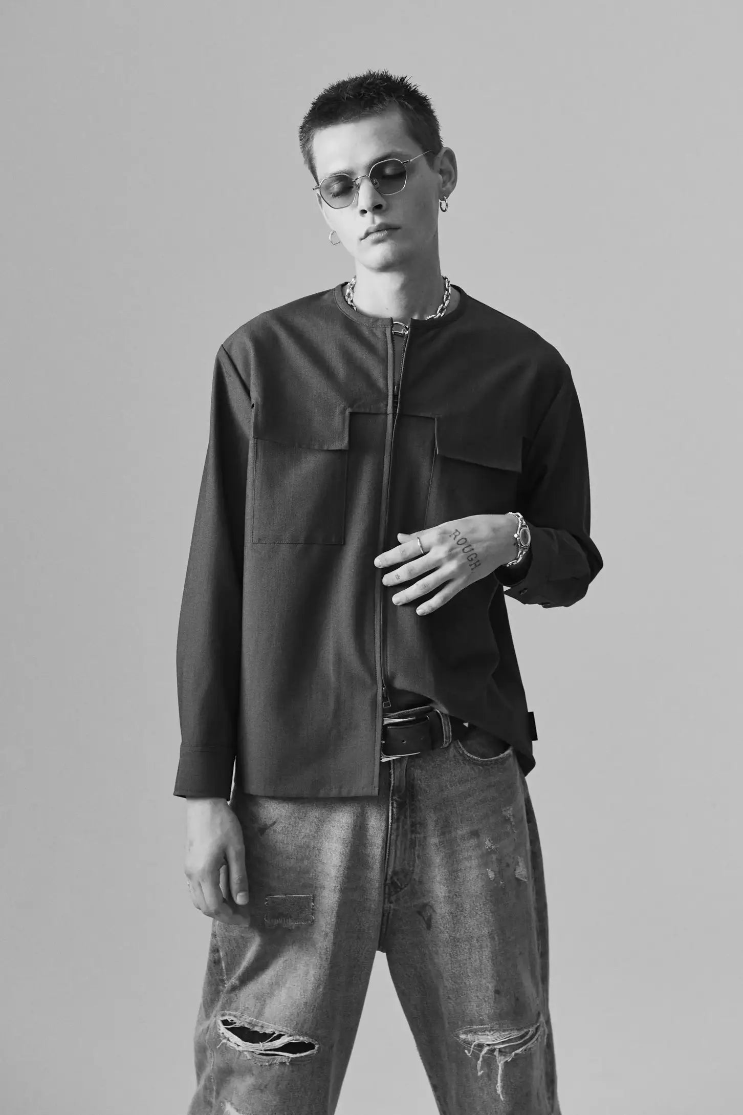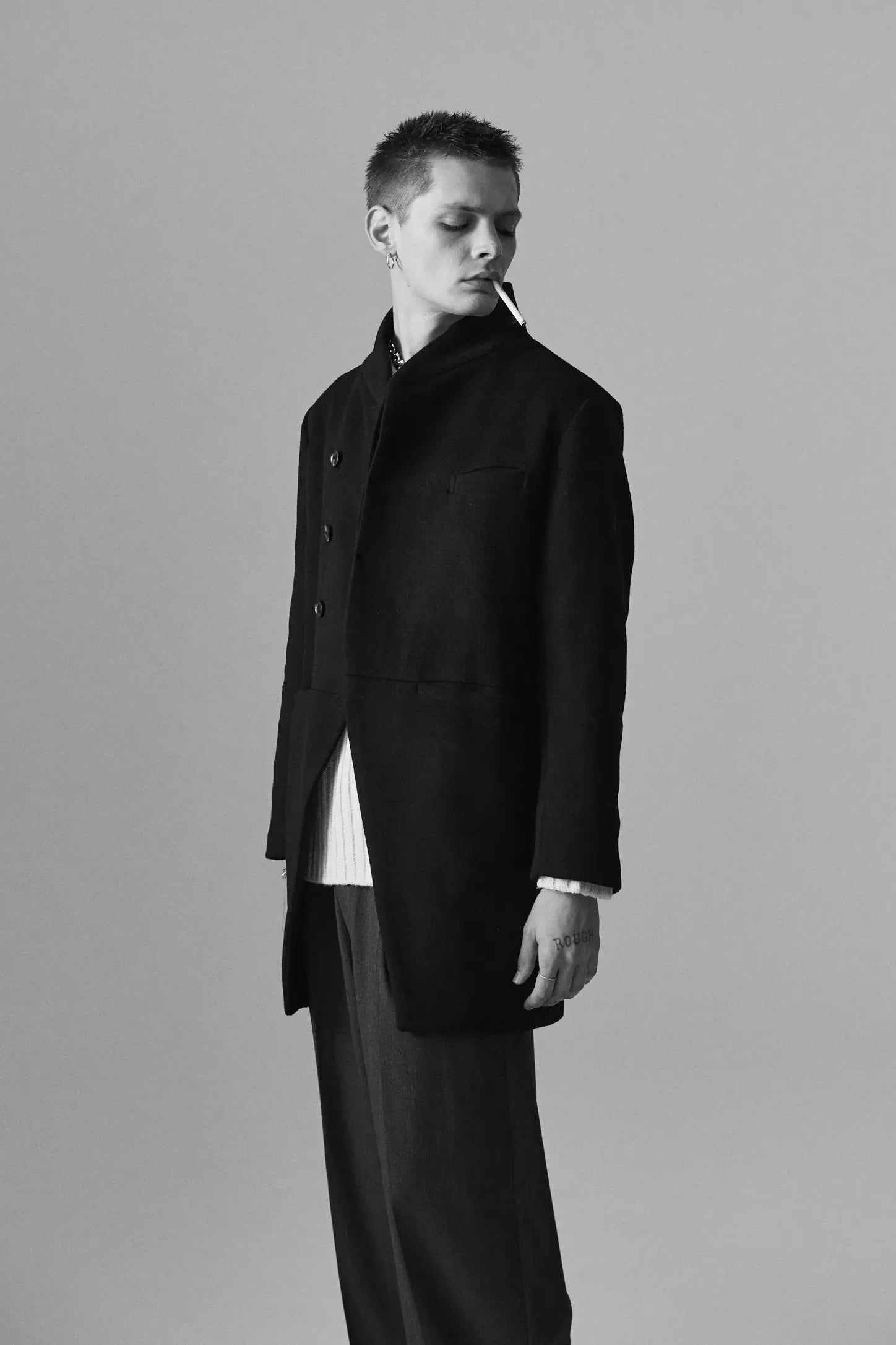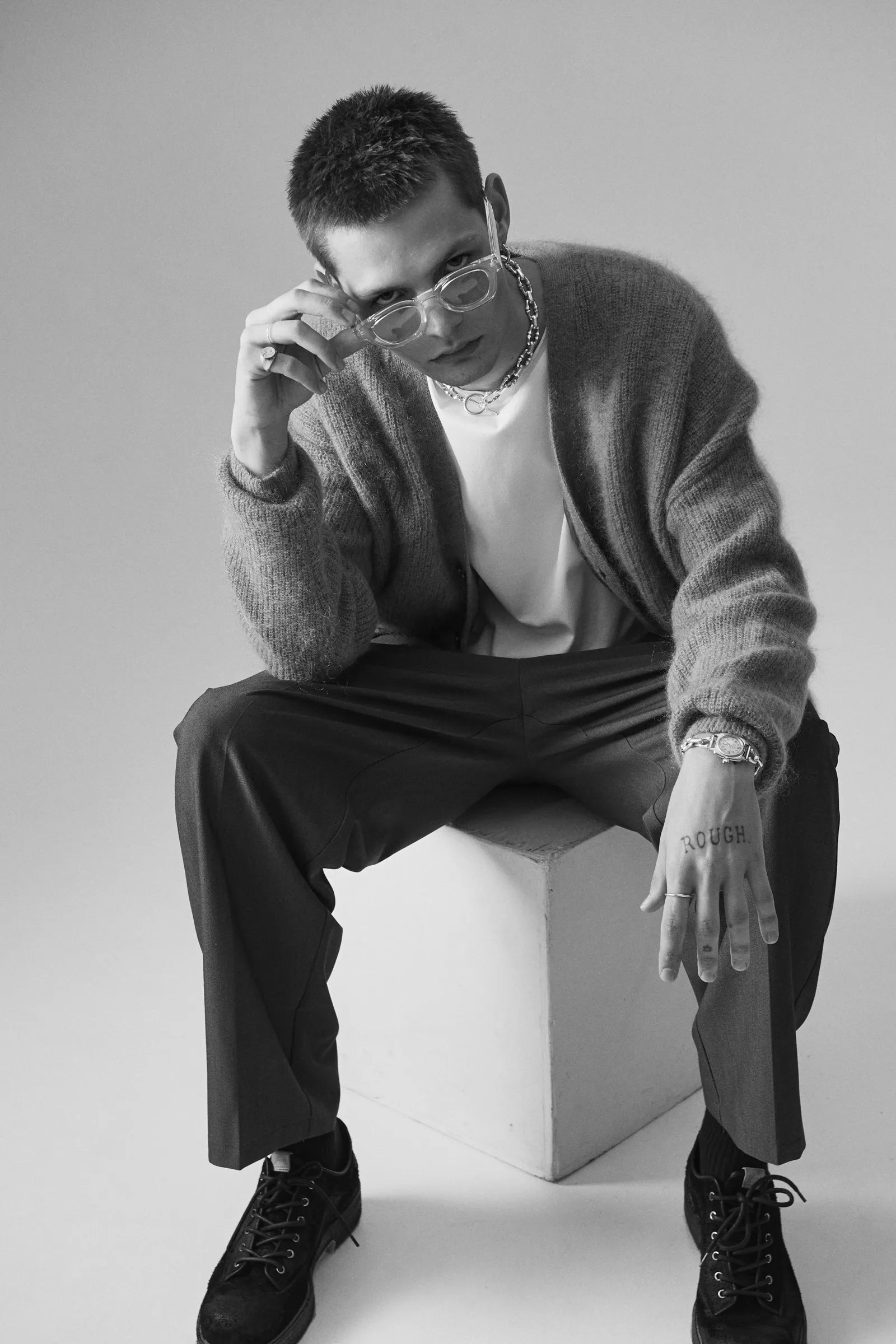ブルーノイズが僕が“Rebirth”と同時に今季表現したかったglambとしての“シンプル”の在り方だった。意見がない人間はつまらない。色や柄によって武装する足し算ではなく、物や人としての存在価値を剝き出しにする引き算を僕は試みた。僕はまた眠れぬ夜に怯えながら、この15型をBlue Noiseと名付けてあなたの心に突き刺すことにした。