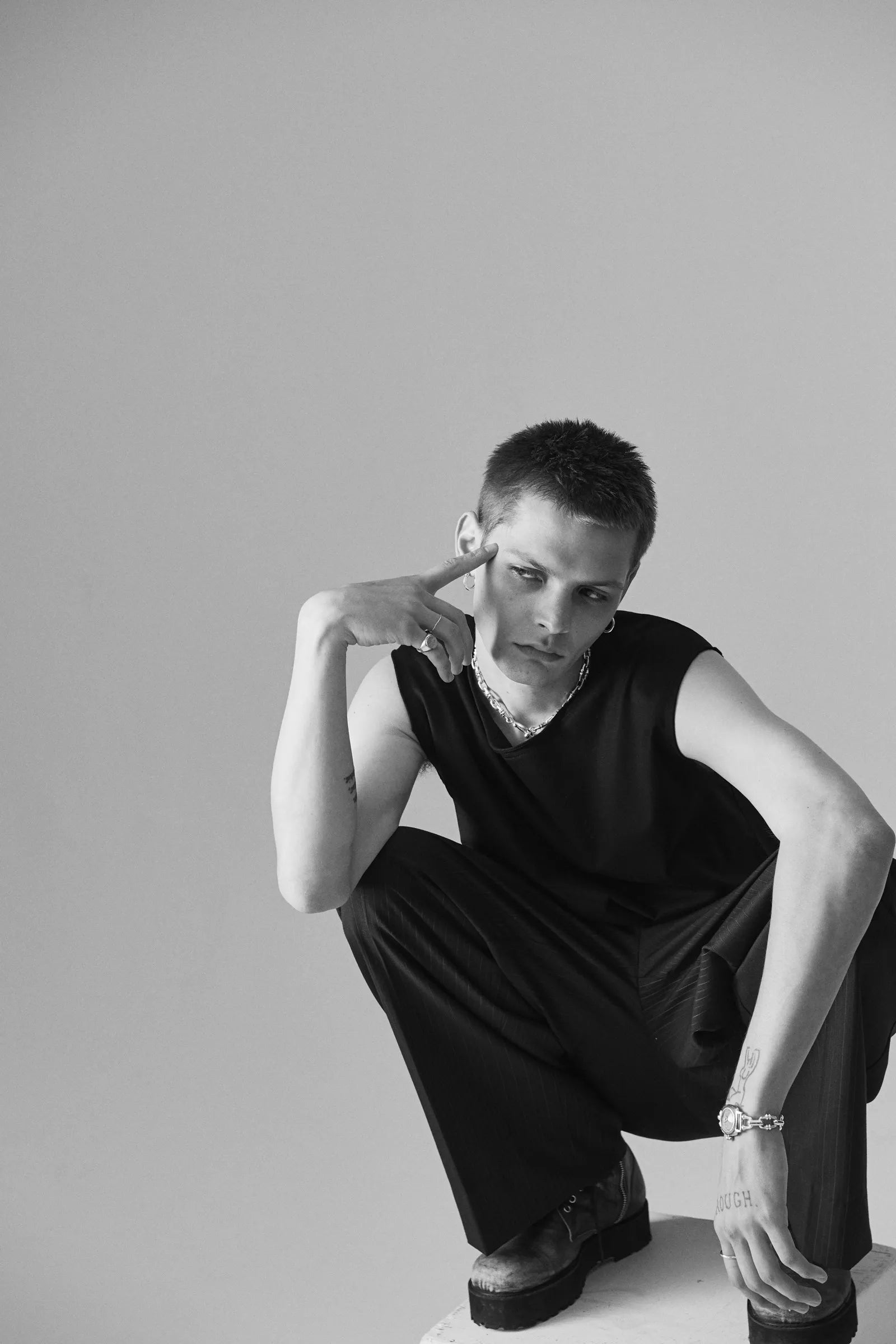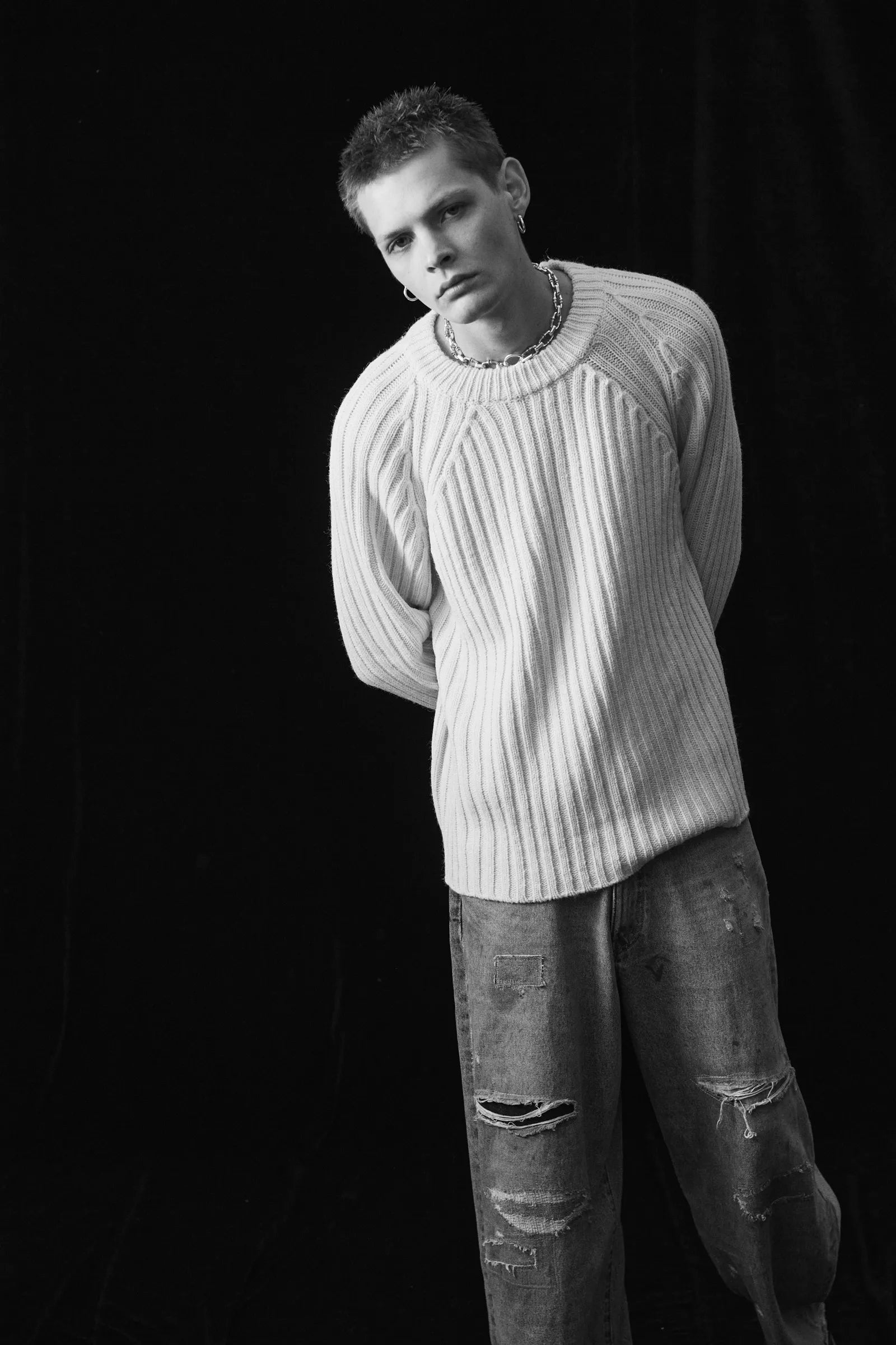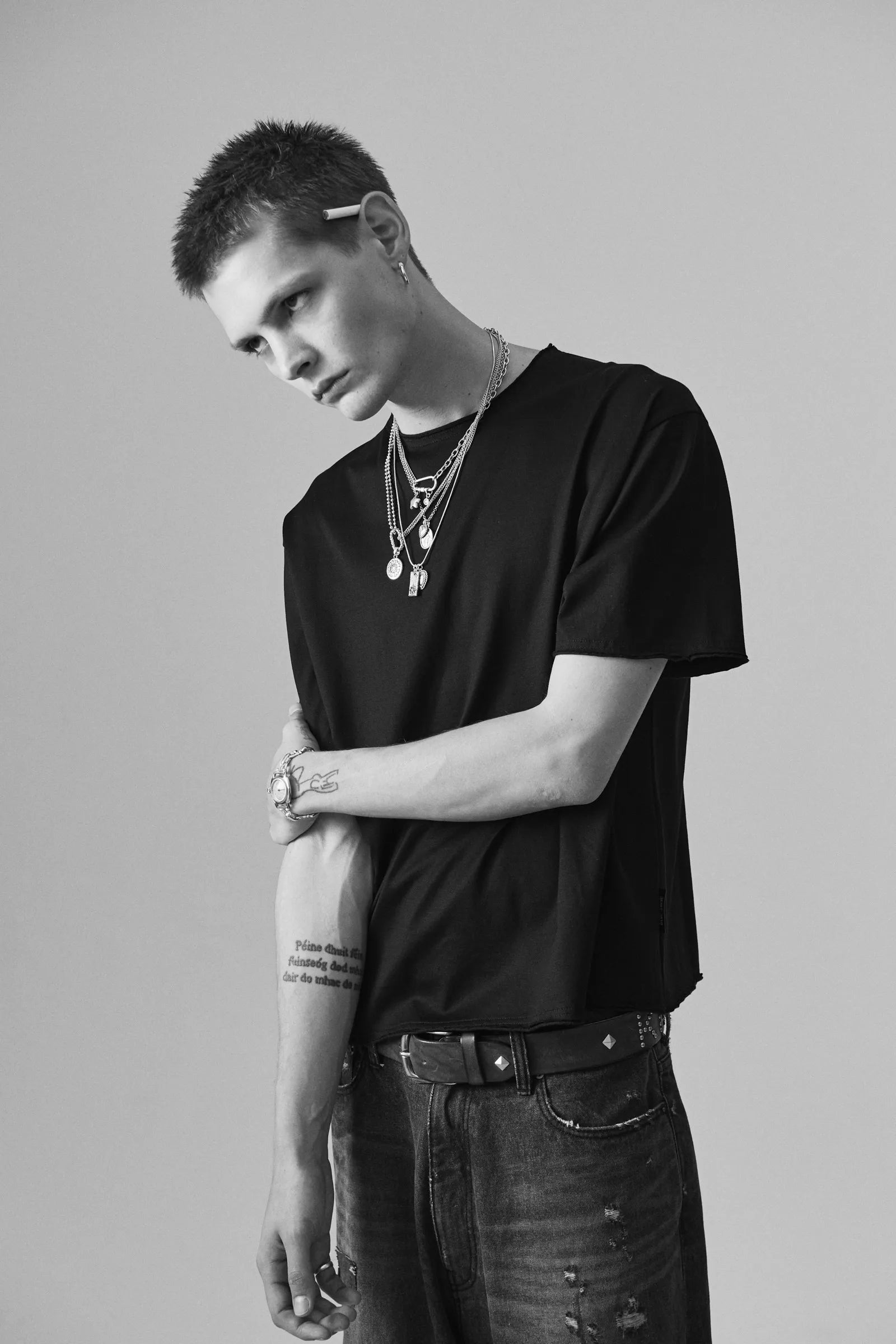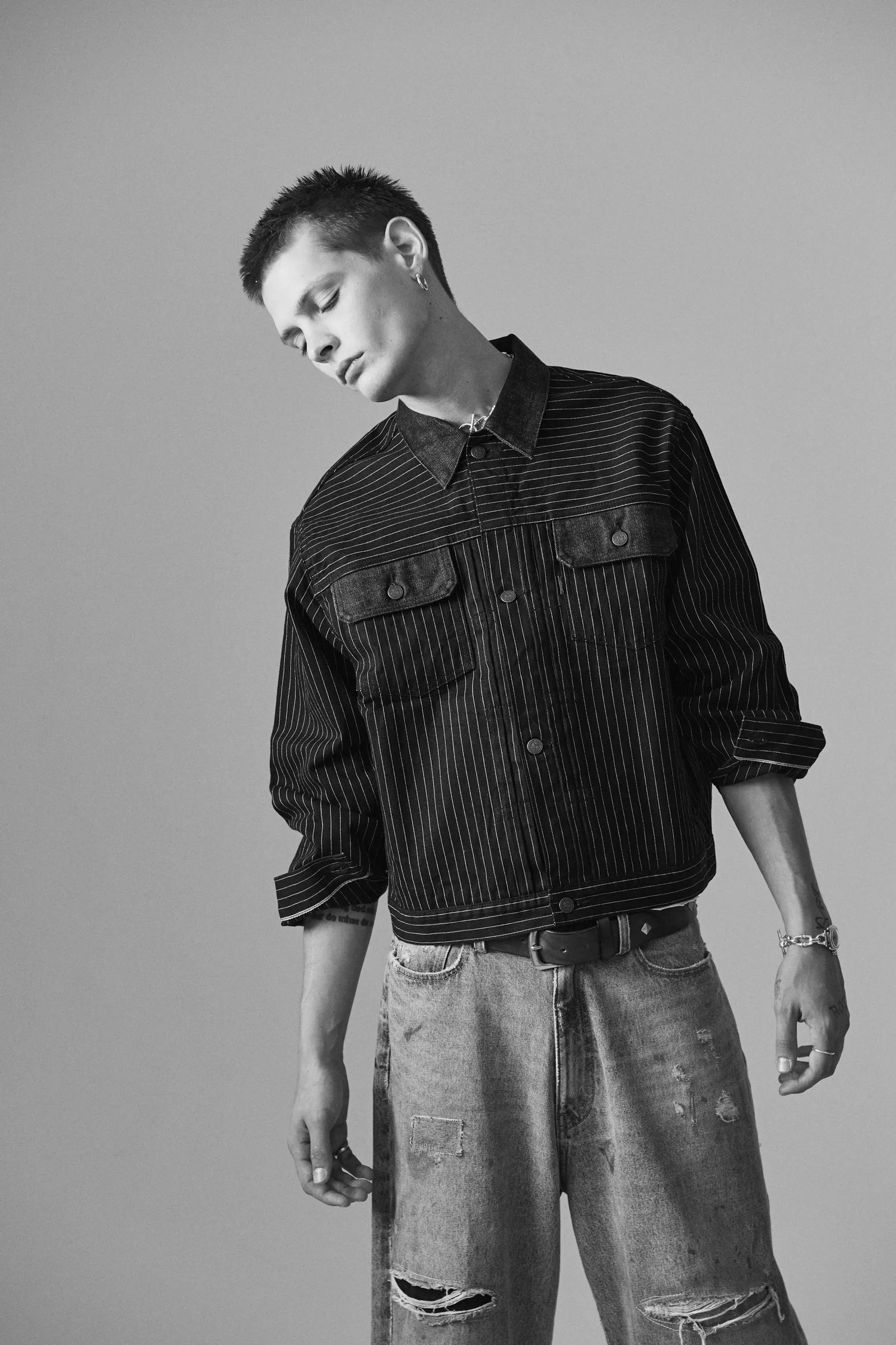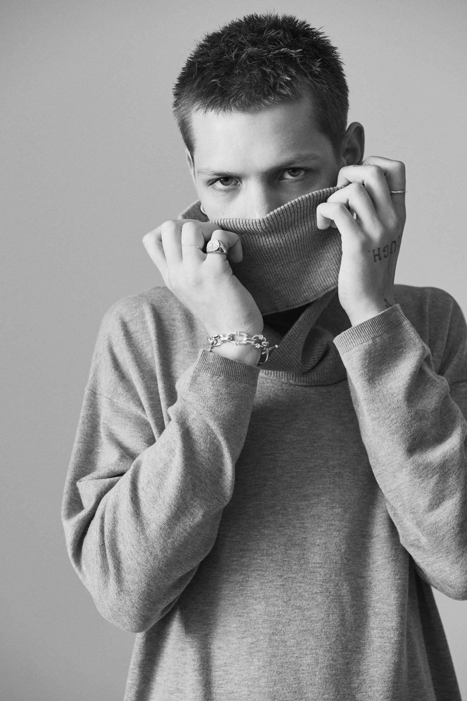 ブルーノイズが僕が“Rebirth”と同時に今季表現したかったglambとしての“シンプル”の在り方だった。意見がない人間はつまらない。色や柄によって武装する足し算ではなく、物や人としての存在価値を剝き出しにする引き算を僕は試みた。僕はまた眠れぬ夜に怯えながら、この15型をBlue Noiseと名付けてあなたの心に突き刺すことにした。
