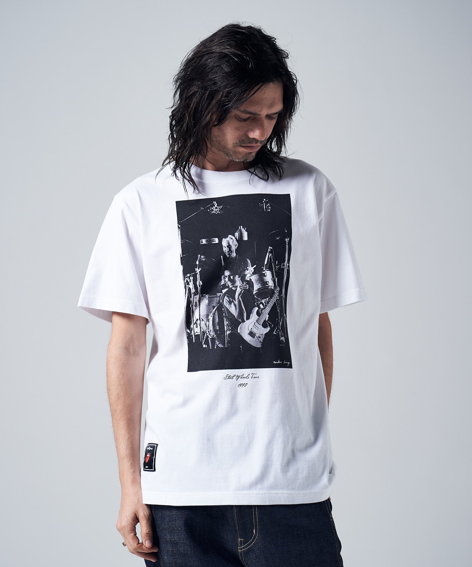 滚石乐队发行18年新专辑《HACKNEY》 DIAMONDS”发行纪念,日本唯一的滚石乐队官方摄影师有贺干夫和glamb的合作项目复刻! Mic Jaggar T是在2022年乐队60周年之际发行的专辑《THE ROLLING STONES LIVE IN》。 JAPAN”中发售,服装和照片的组合展开也成为了话题。