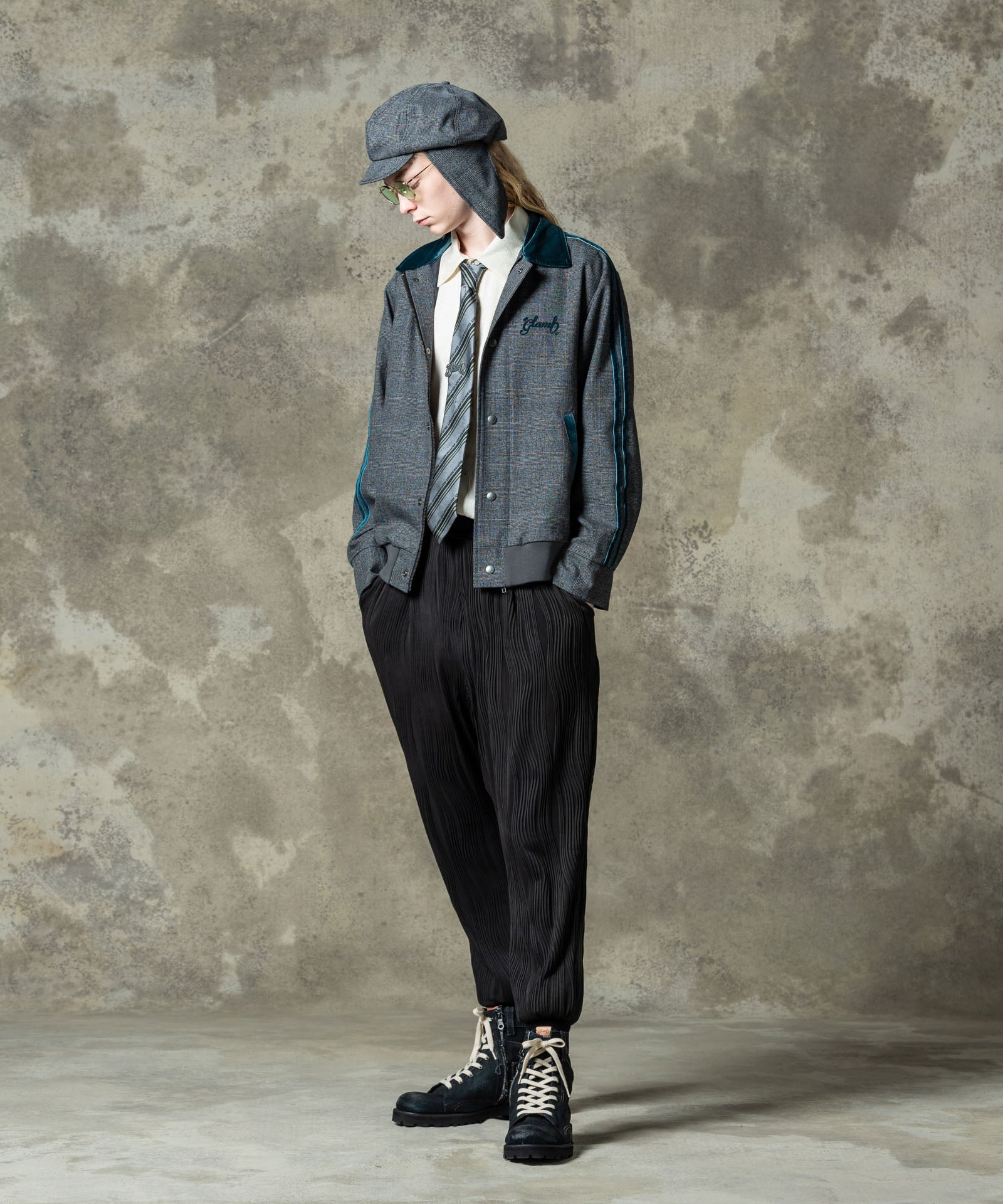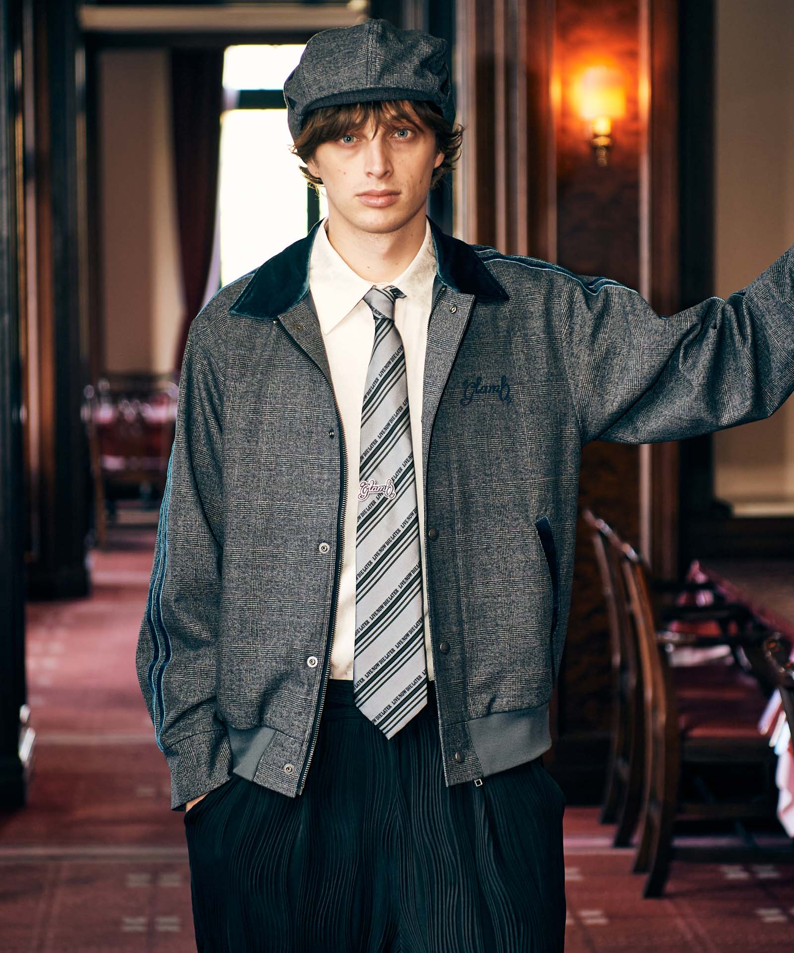 Glen Check Line Blouson将跟踪服与轻快的运动风格相结合,塑造了新古典风格。 身体质地微起毛的红色格子质地,成为了配色的要点的转换使用天鹅绒。 的长度被设置短的紧凑的轮廓归结,狩猎和高尔夫球等绅士竞技的服装使人联想到的高雅又活泼的身姿归结了。 左胸用与身体同色系若无其事地刺绣了品牌标志以外,手臂追加了像卡车运动服一样的线条使用。 根据搭配的下装和内搭,既可以做复古也可以做街头造型的调整幅度是魅力的1件。