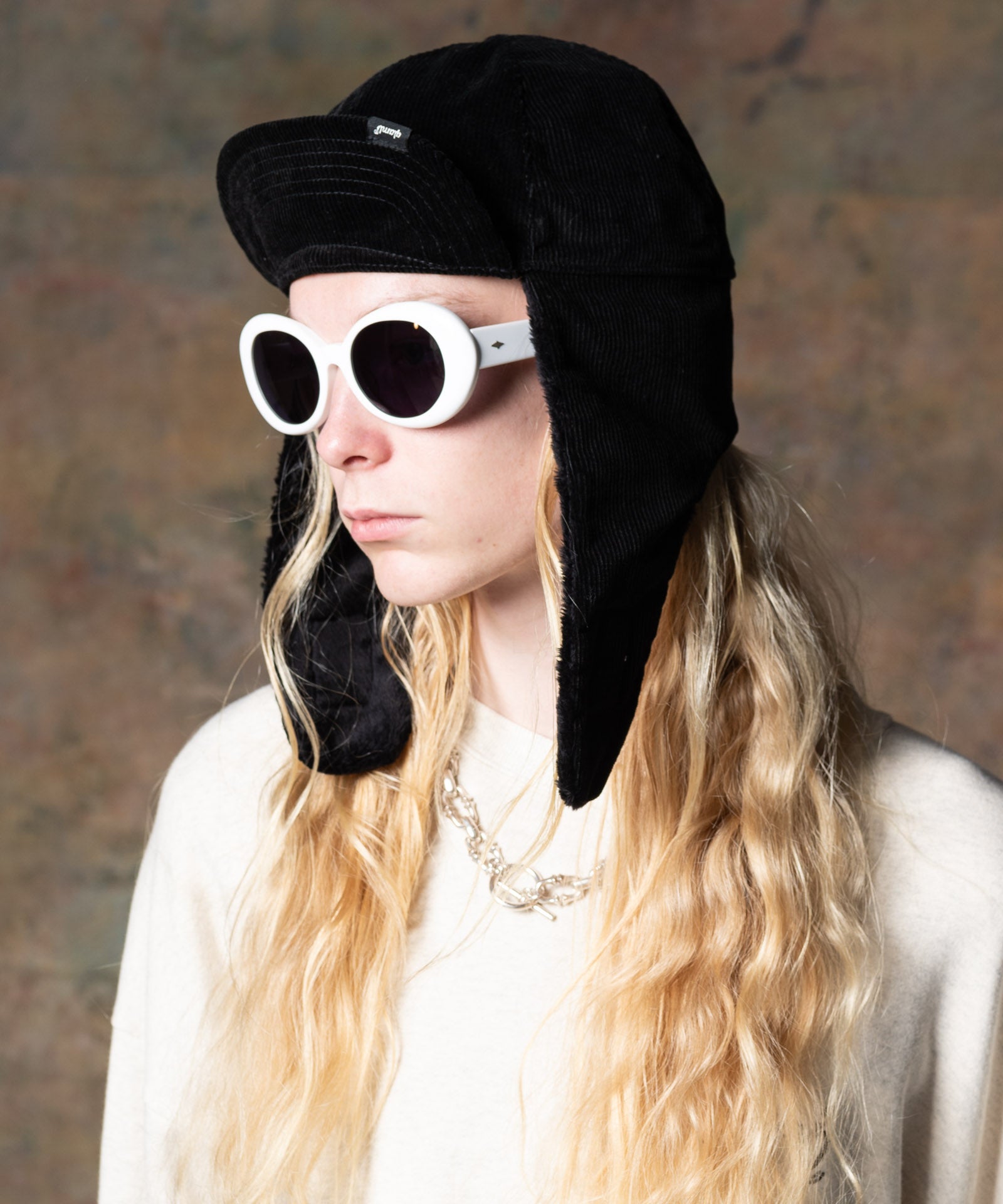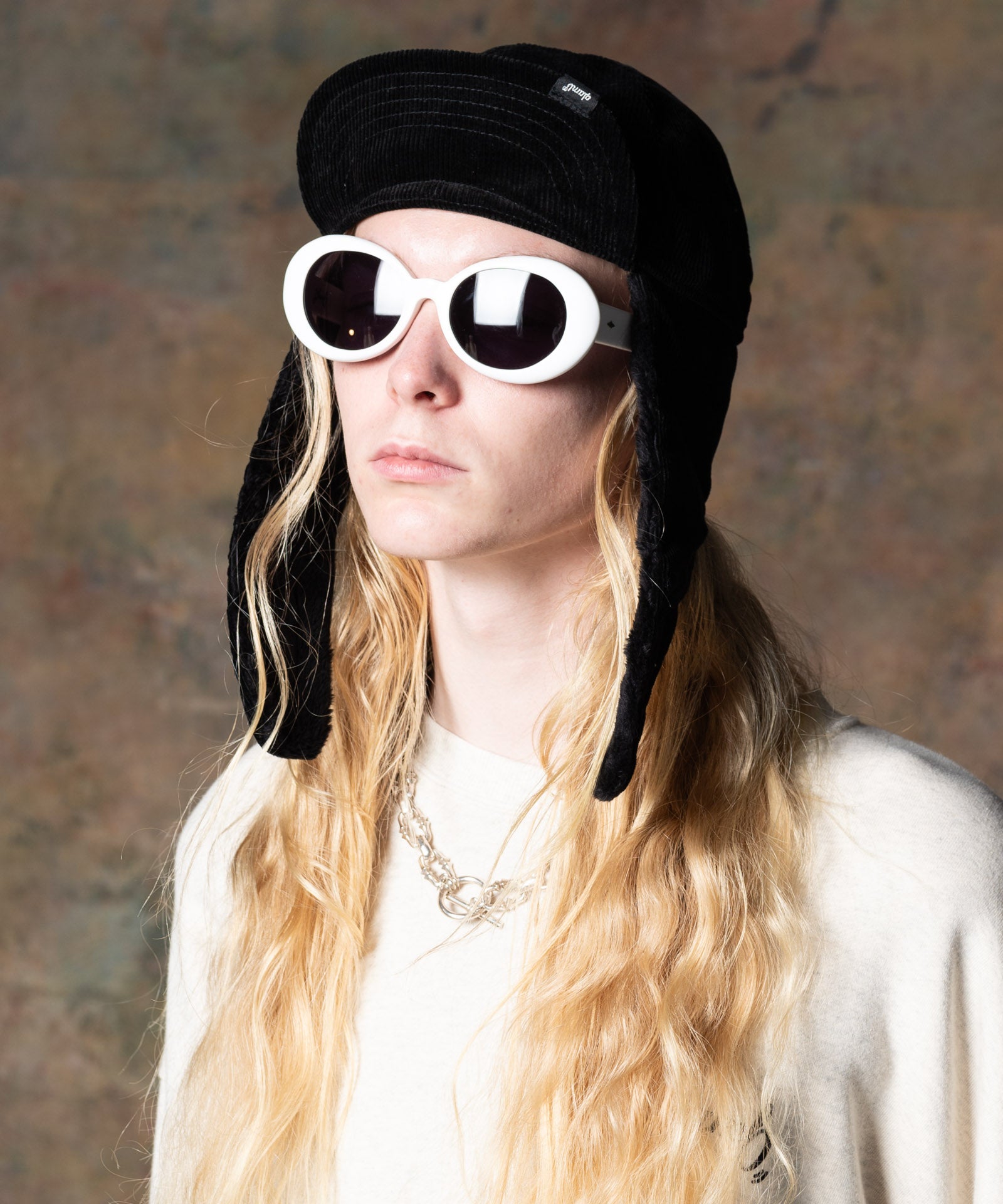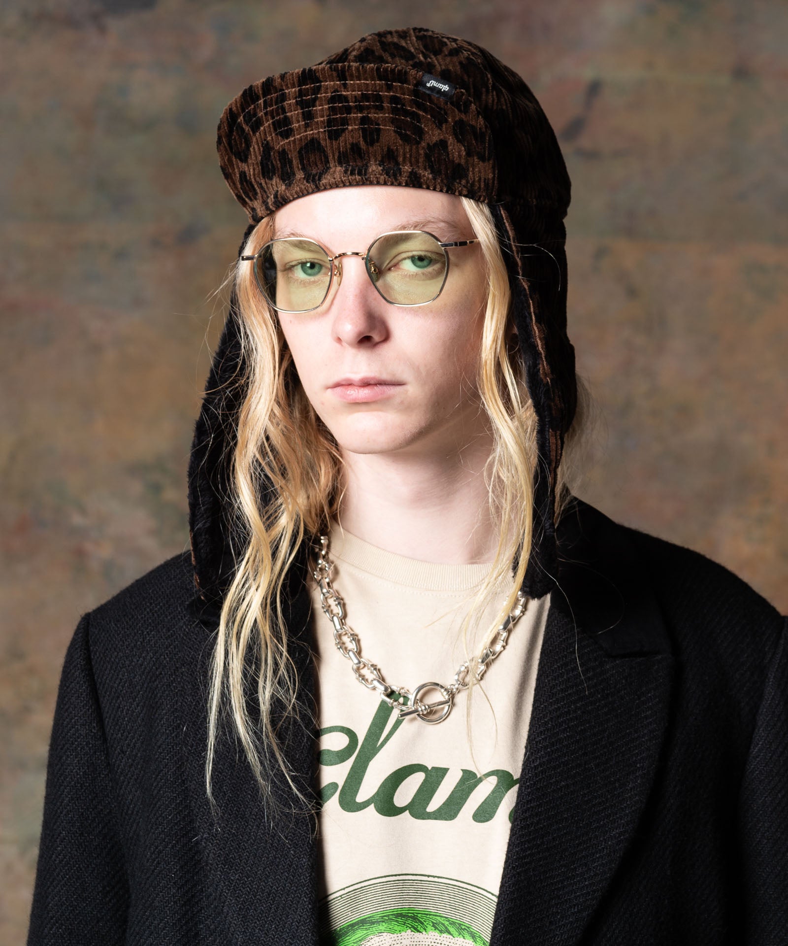 grange fashion中具有代表性的头戴飞行帽,本季glamb也推出了Compact Brim Flight Cap。 小巧的尺寸感的帽檐在根部施予补强针完成的东西。 翻转的时候也漂亮地固定剪影。 使用了boa素材的耳朵部分成为柏克罗留简单地整理。 内侧还备有可调整尺寸的皮带。