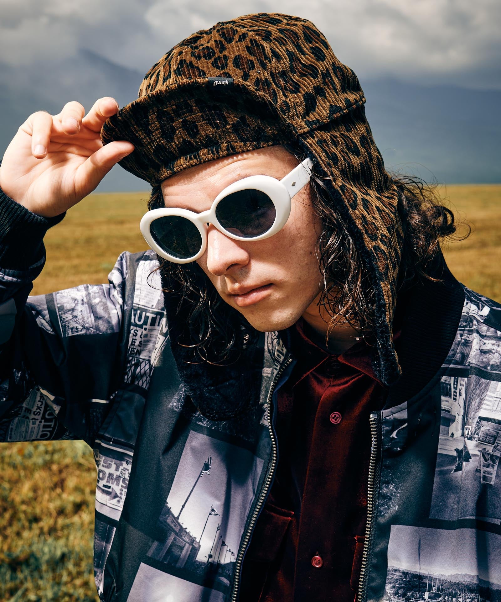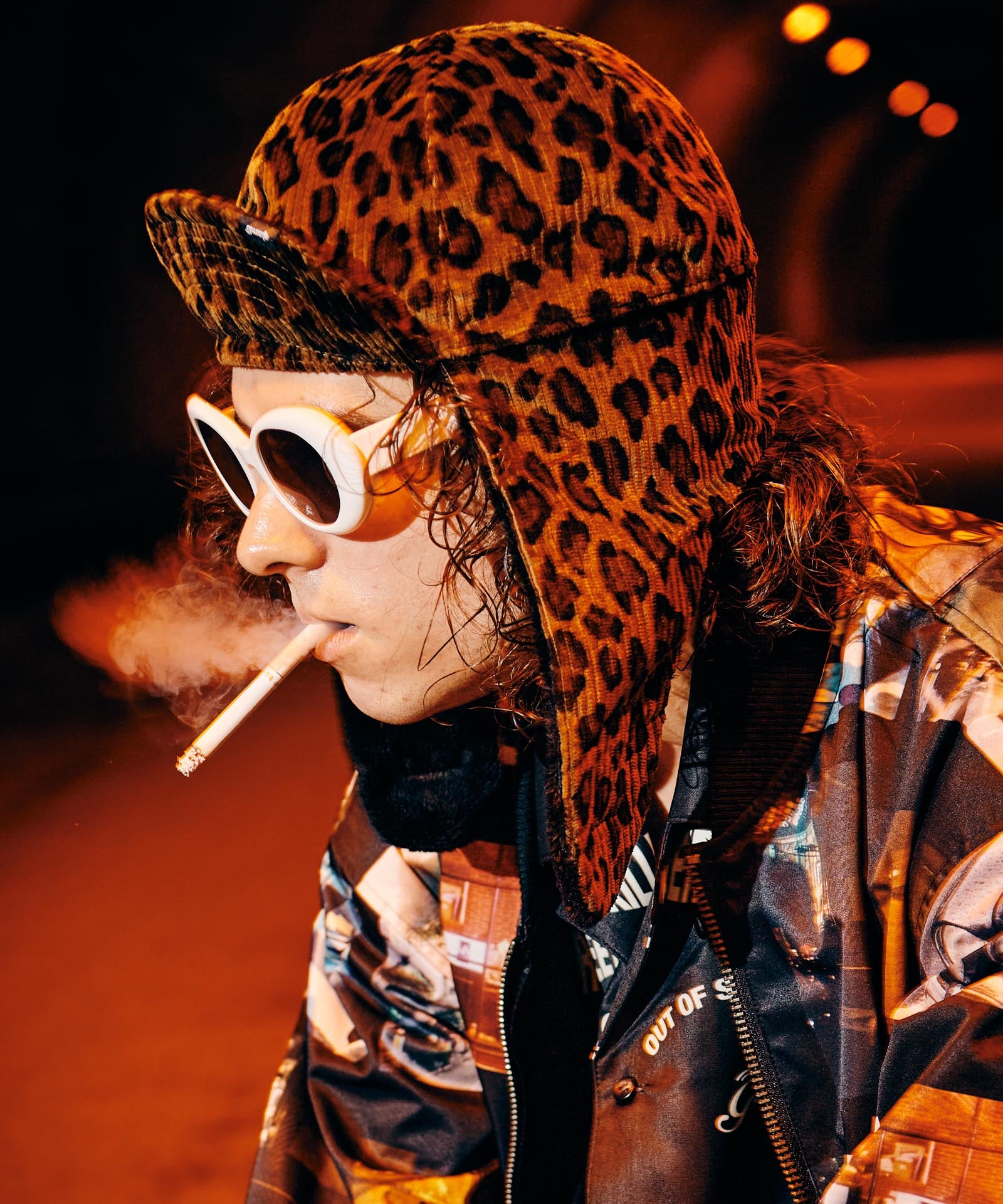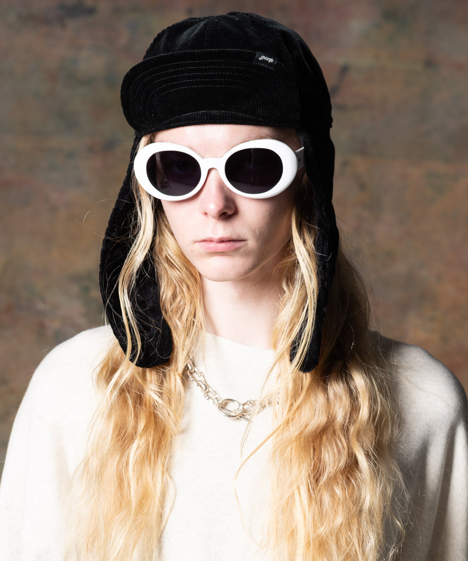 grange fashion中具有代表性的头戴飞行帽,本季glamb也推出了Compact Brim Flight Cap。 小巧的尺寸感的帽檐在根部施予补强针完成的东西。 翻转的时候也漂亮地固定剪影。 使用了boa素材的耳朵部分成为柏克罗留简单地整理。 内侧还备有可调整尺寸的皮带。