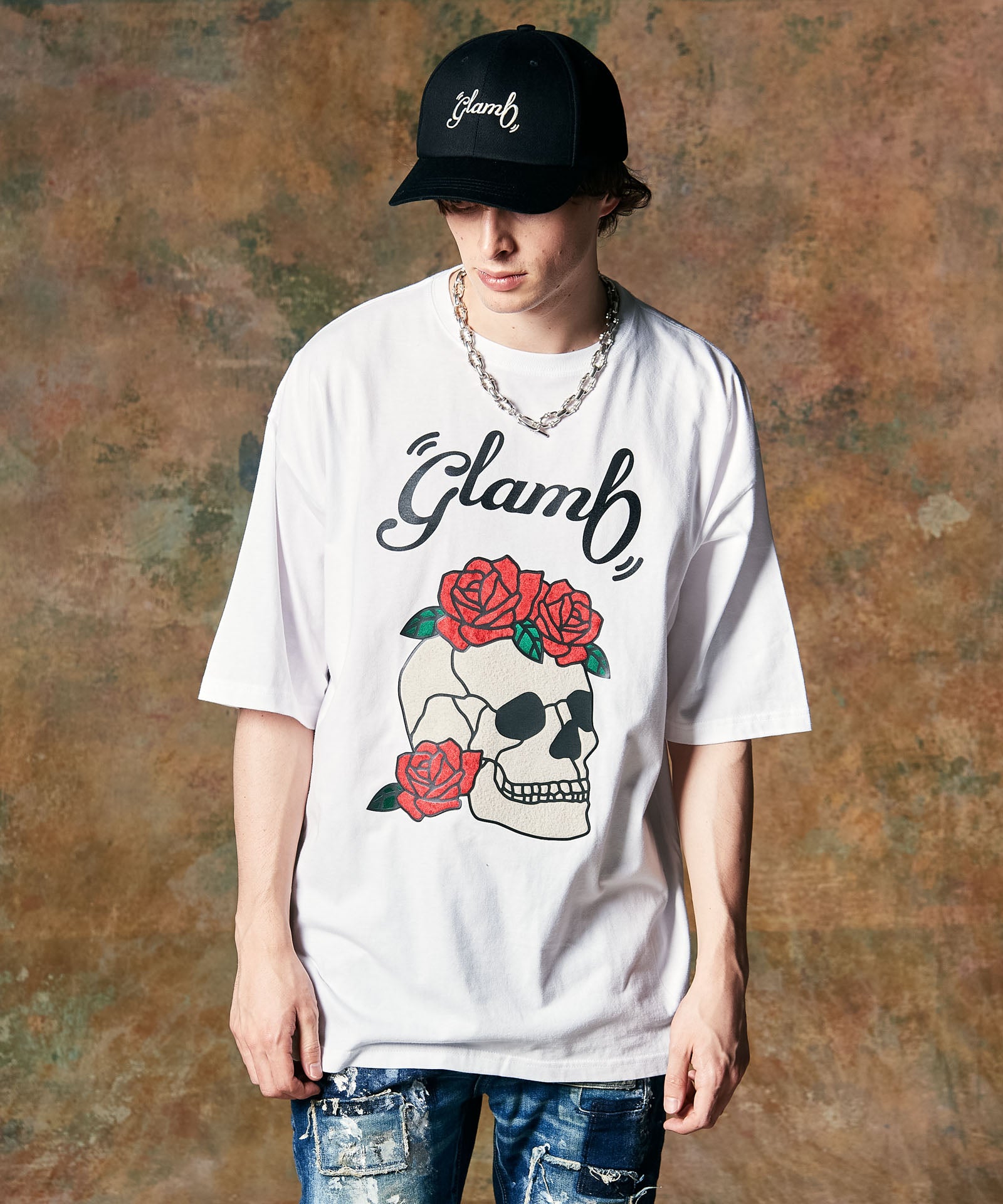 彩色玻璃頭骨T卹表達了該品牌通過使用多個紡織品構建的奇妙世界觀。印有品牌徽標的車身裝飾有彩色玻璃圖案。骨骼是羊毛,花是絲絨,葉子是緞子,織物彼此不同,並且通過傳遞到飾面添加輪廓。人體織物由100%棉花5.6盎司重型球衣製成。身體有一個超大的盒子式輪廓。